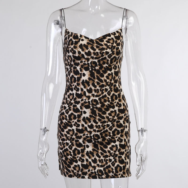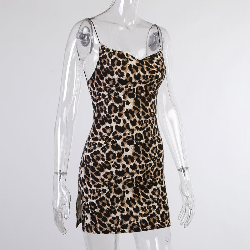 Kvinnor Miniklänning Leopardmönster Polyester Spaghetti-axelband