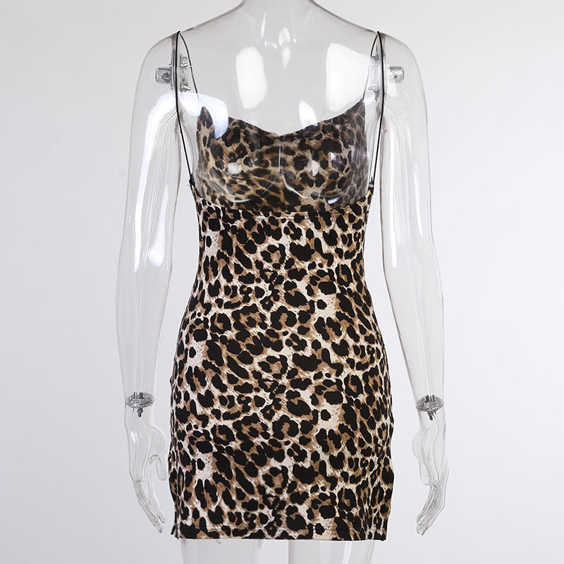 Upplev en känsla av frihet och stil med denna korta klänning i leopardmönster. Den är perfekt för både avslappnade och festliga tillfällen, vilket gör att du alltid kan känna dig självsäker och elegant.