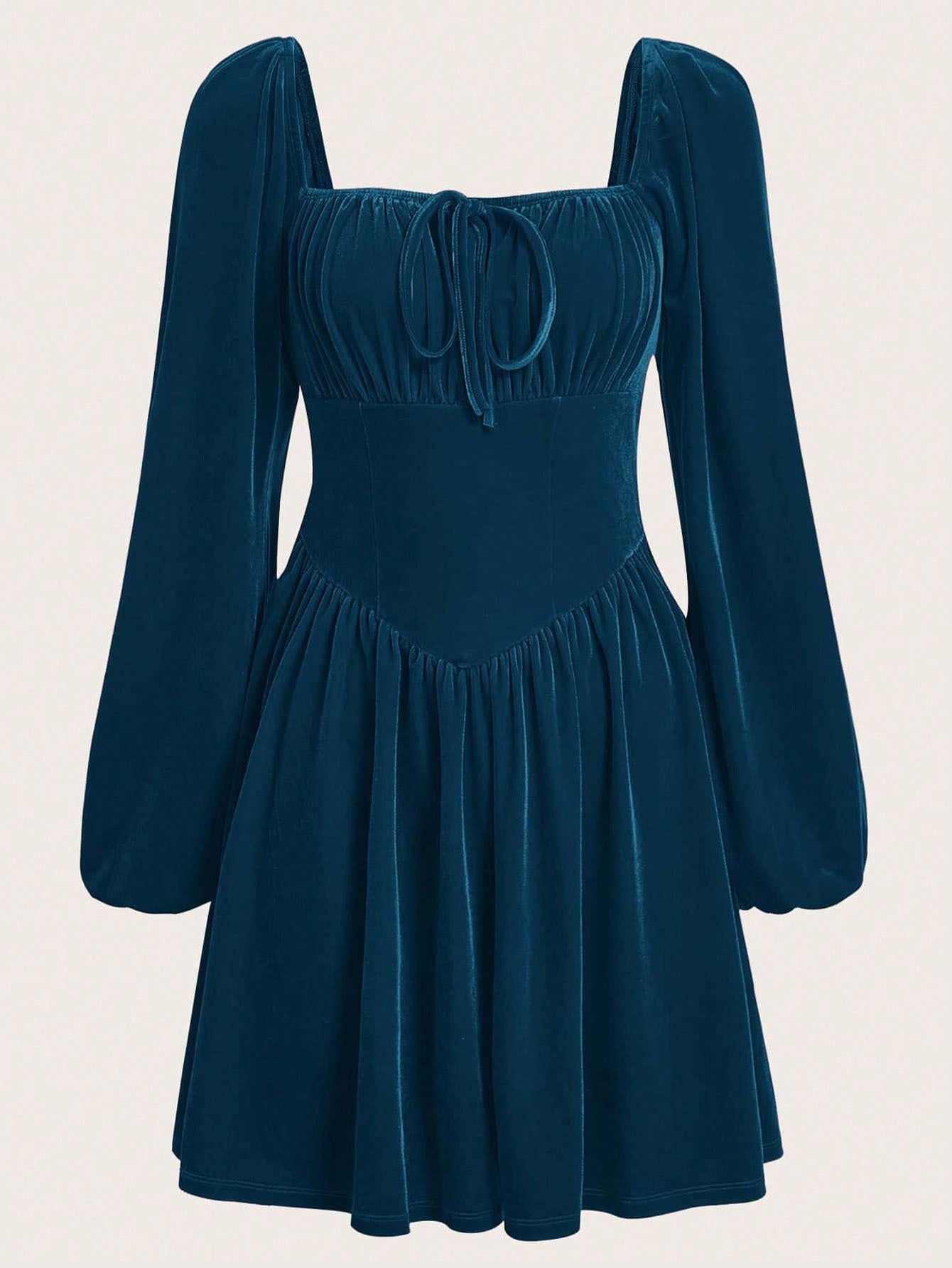 Kvinnor Miniklänning Puffärmar Justerbar Snörning Mjuk Tygblandning