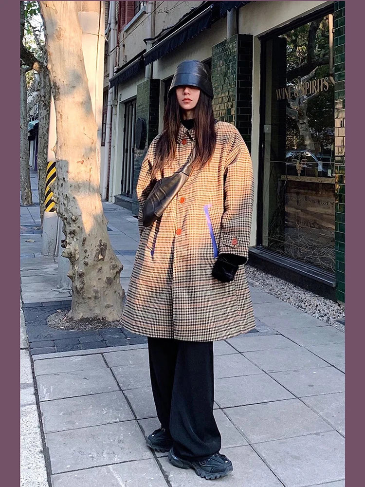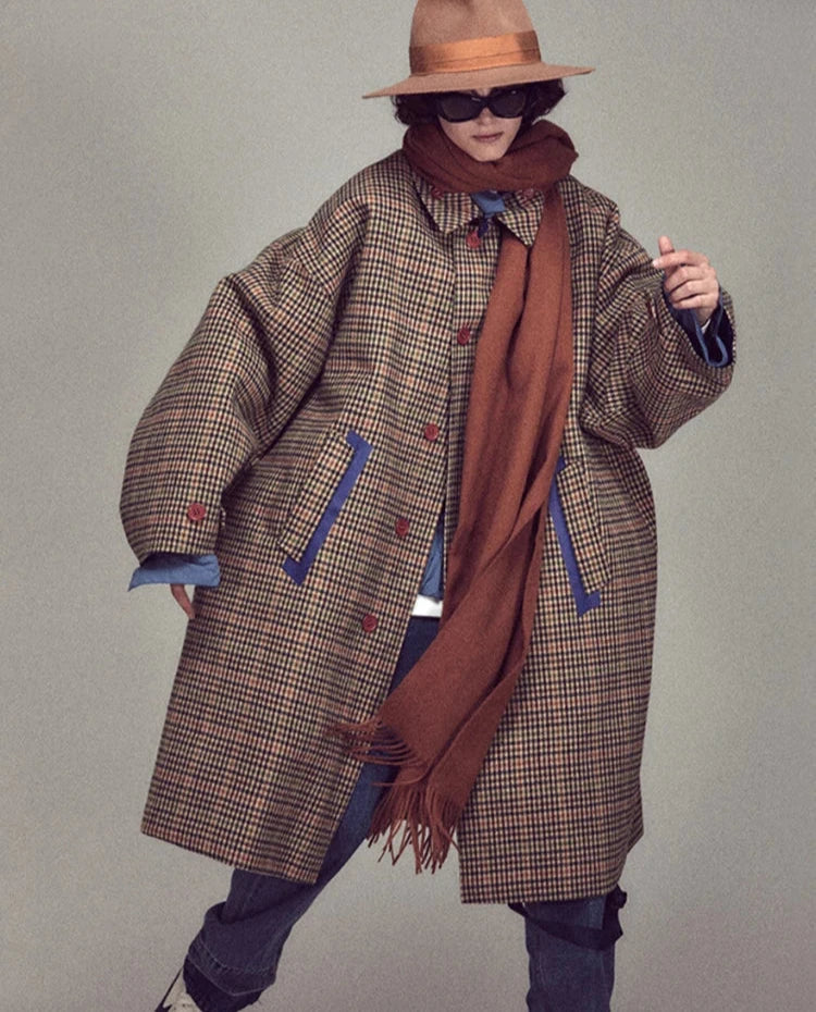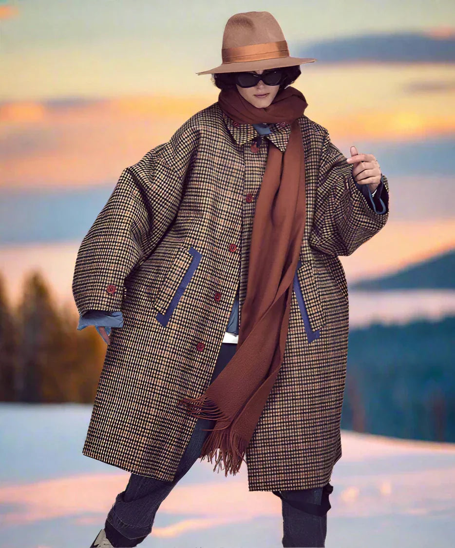 Överdimensionerad Trenchrock för Kvinnor med Rutigt Mönster