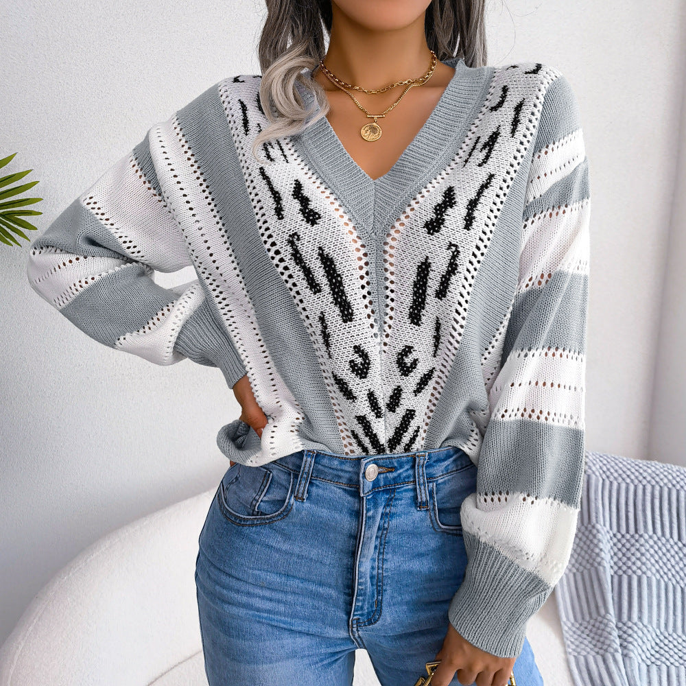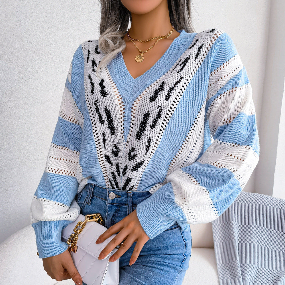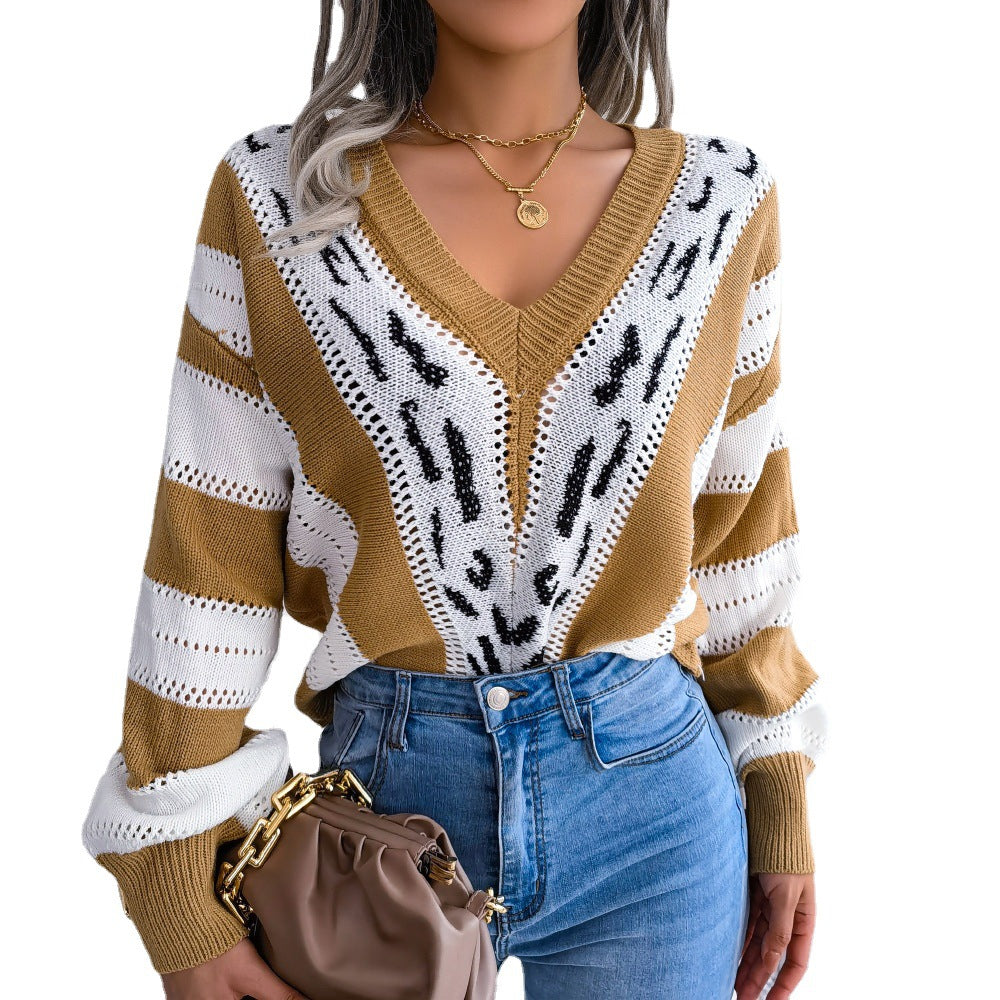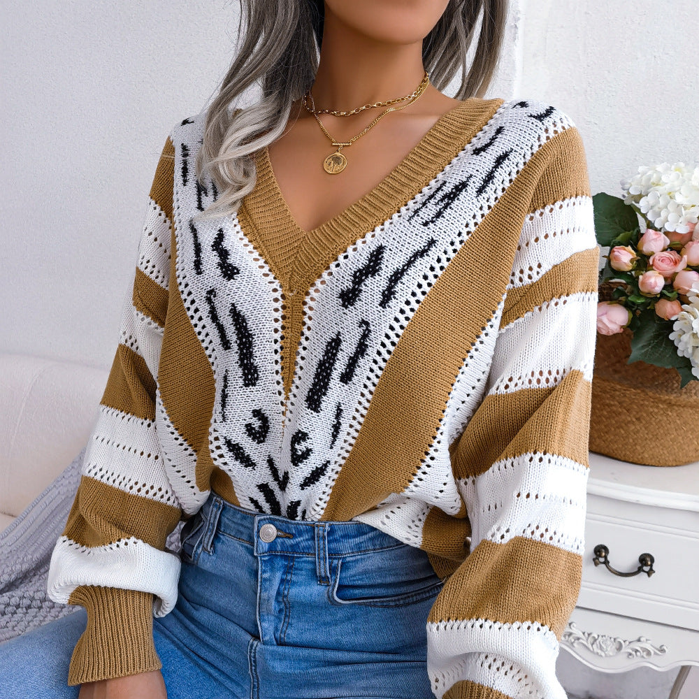 Kvinnor Tröja Leopardmönster Lykta Ärmar Stickad