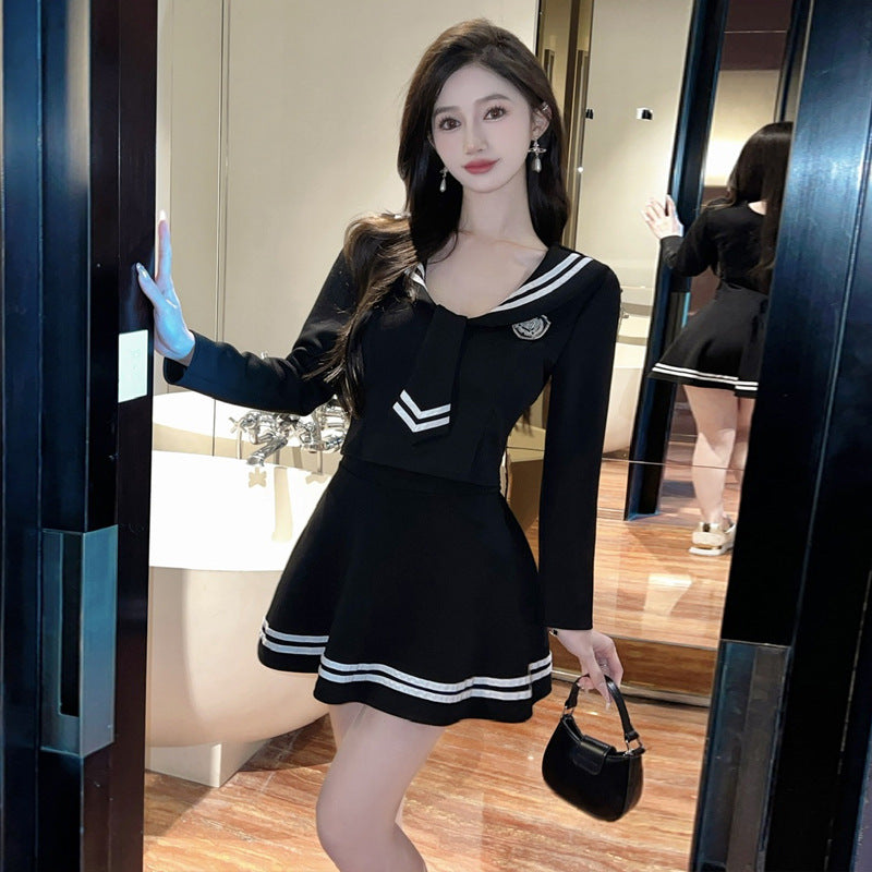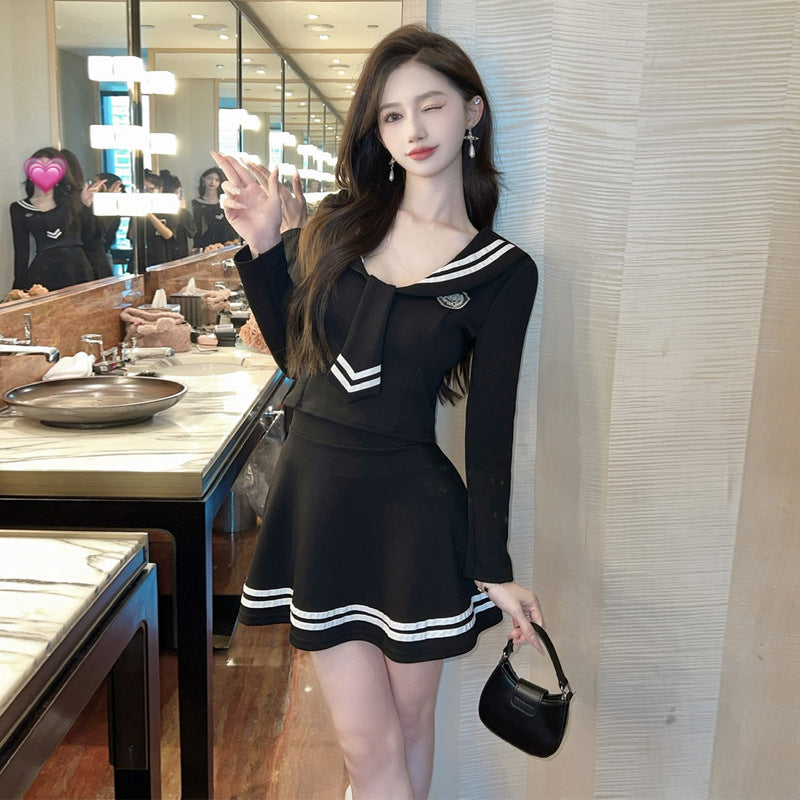 Denna klänning har en tidlös design med långa ärmar och en kort kjol som ger en modern touch. Den är idealisk för olika tillfällen, från kontoret till kvällsevenemang, och kan enkelt stylas för att passa din personliga stil.
