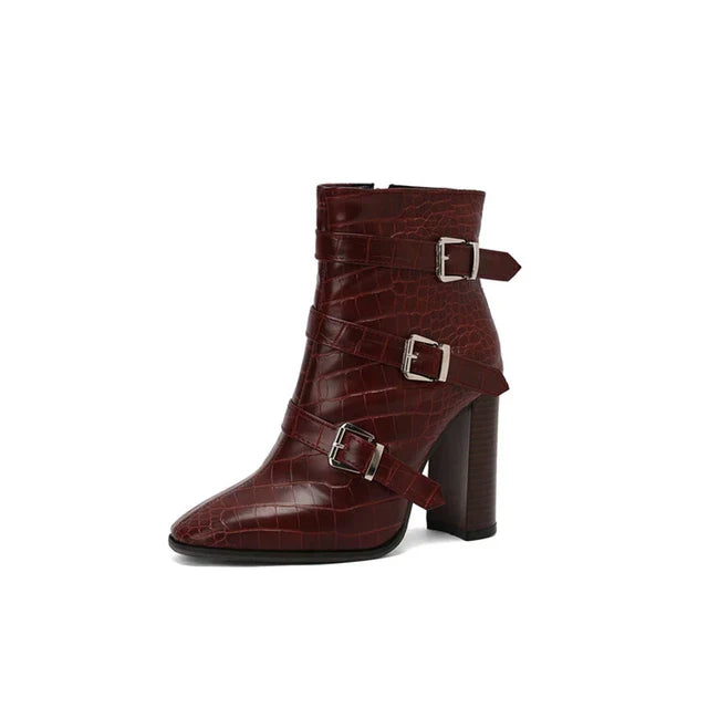 Kvinnors Ankelstövlar Blockklack Läder med Spännen