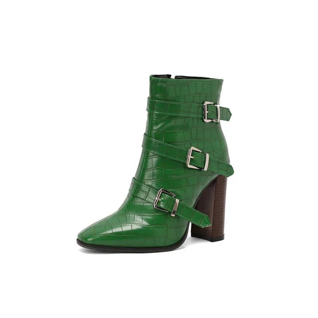 Dessa ankelstövlar kombinerar stil och komfort, vilket gör dem till ett perfekt val för både vardag och fest. Med en elegant design och en stabil blockklack på 10 cm, kommer du att känna dig självsäker och chic.