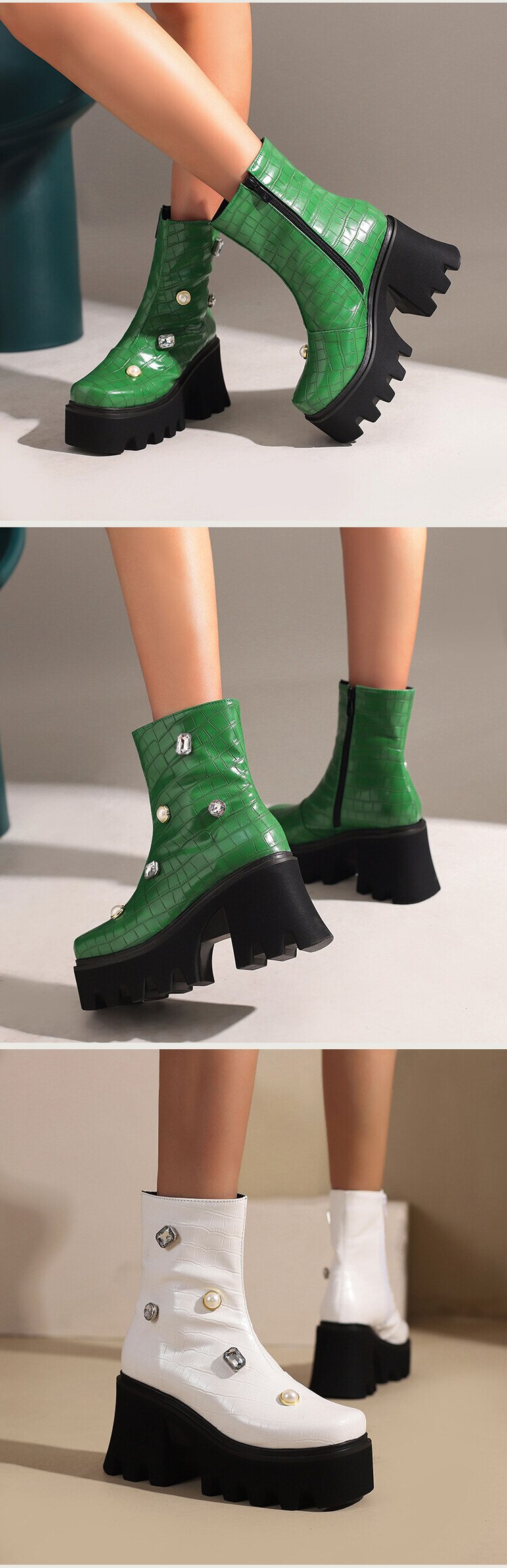 Stövlarna är designade för att passa perfekt med eleganta jumpsuits och andra kläder. Den praktiska blixtlåsfunktionen gör det enkelt att ta på och av dem, vilket gör dem till ett utmärkt val för både vardag och fest.