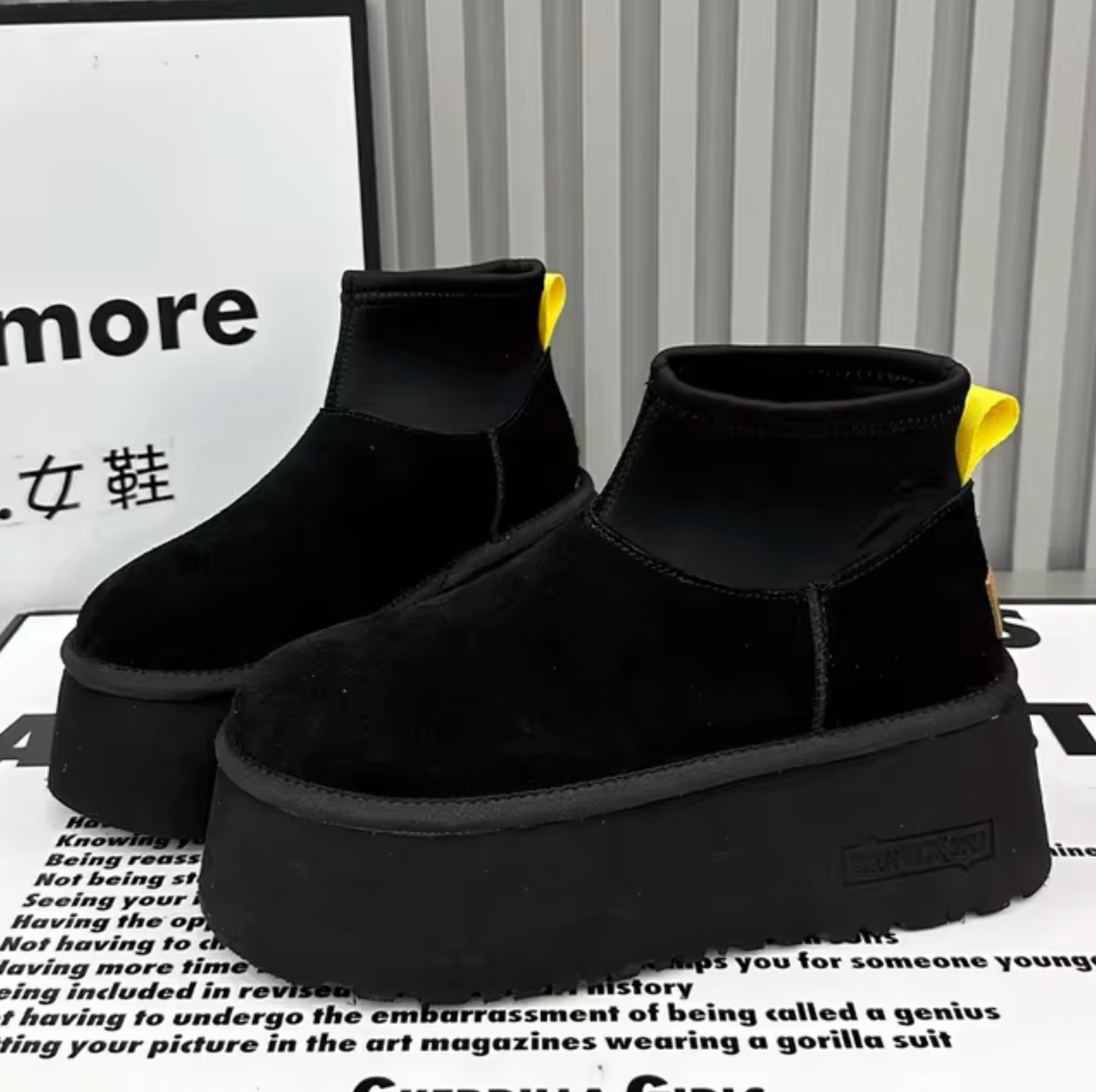 Dessa stövlar är tillverkade av robust material och är fodrade med mjuk plysch för extra komfort. Den vattenavvisande egenskapen gör dem perfekta för torra och snöiga vinterdagar, vilket gör att du kan känna dig trygg och stilfull.