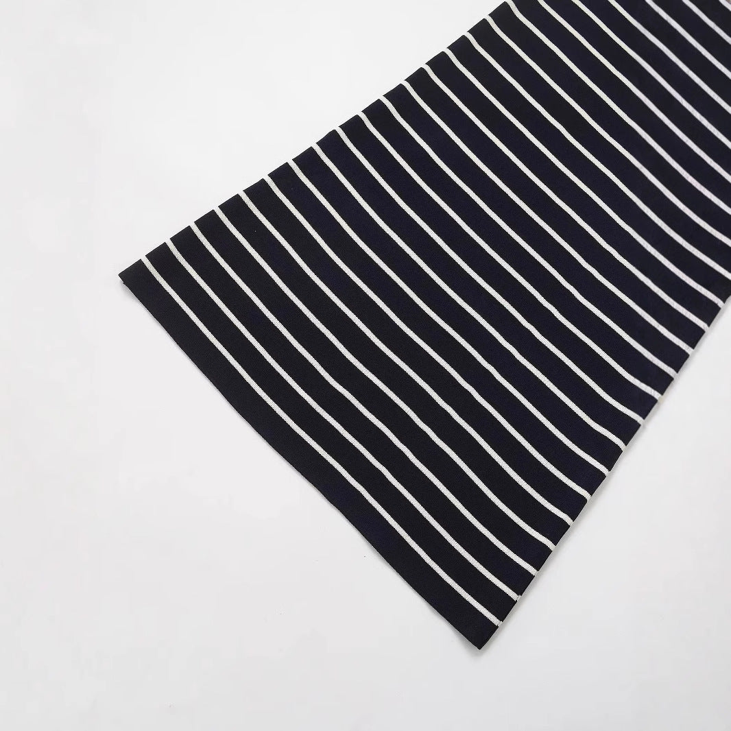 Klänningen har ett elegant randigt mönster som ger en fräsch och modern känsla. Den är idealisk för både avslappnade och mer formella sammanhang, vilket gör den till en mångsidig del av din garderob.