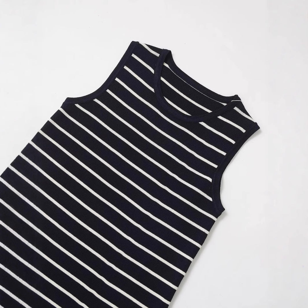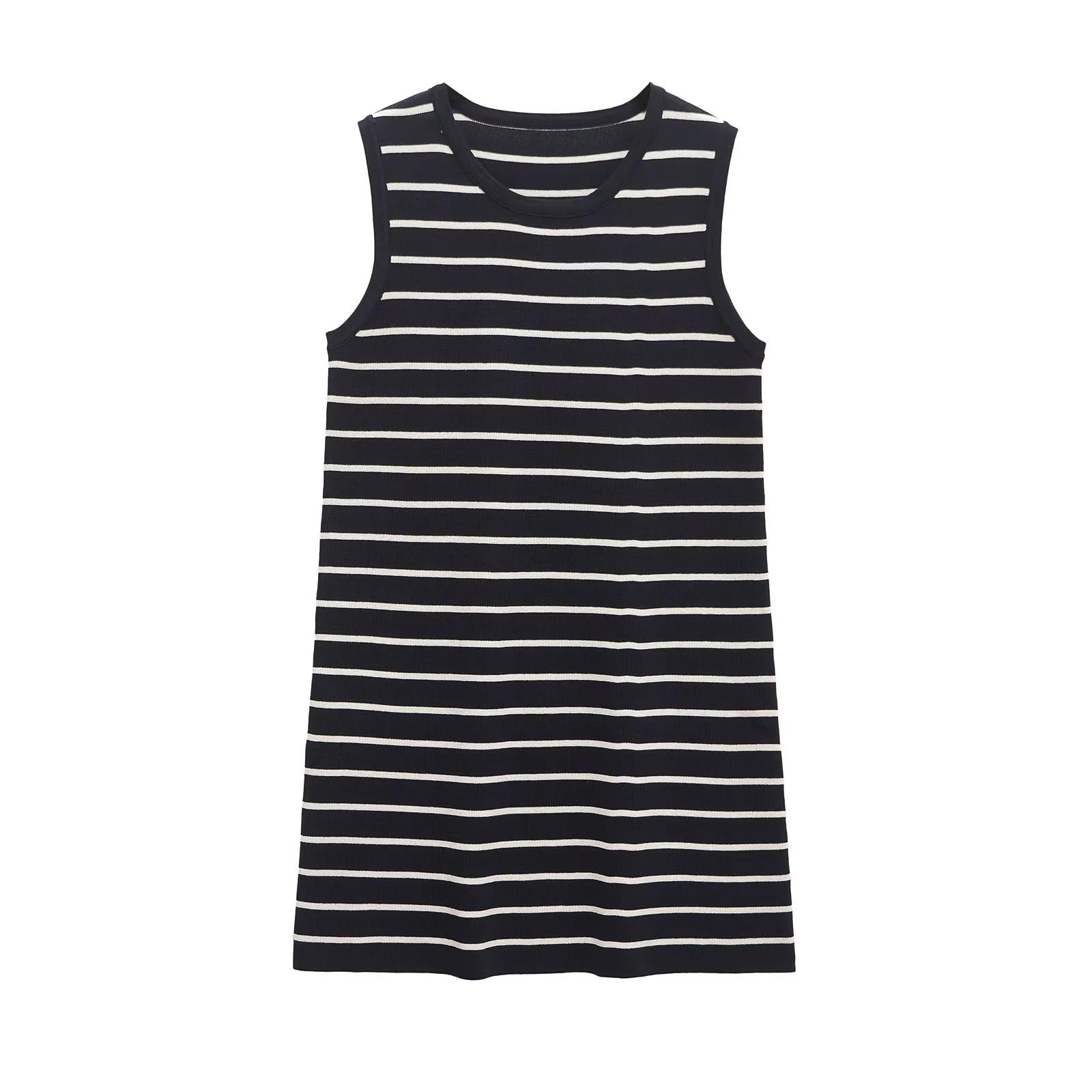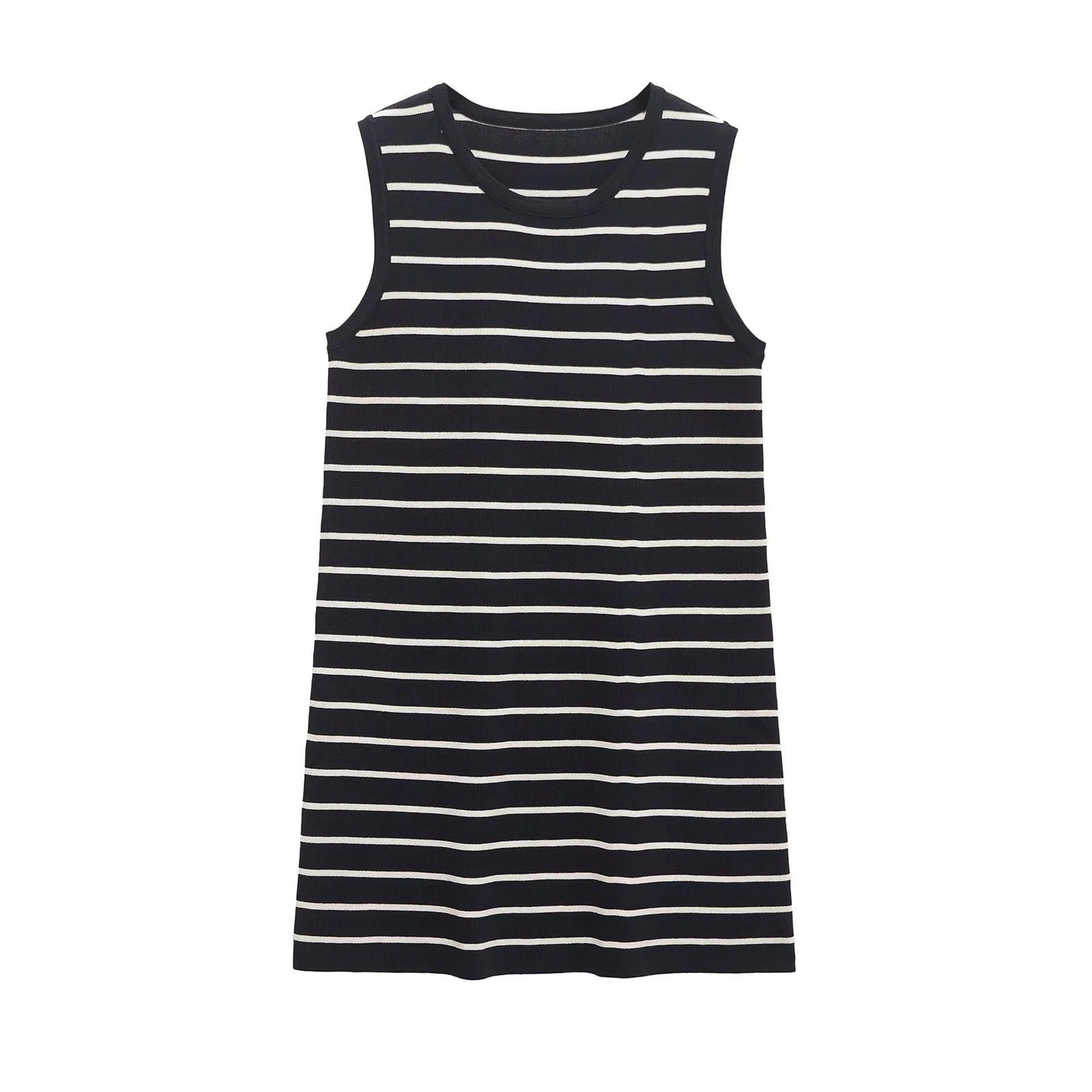 Ärmlös Klänning För Kvinnor Med Randigt Mönster