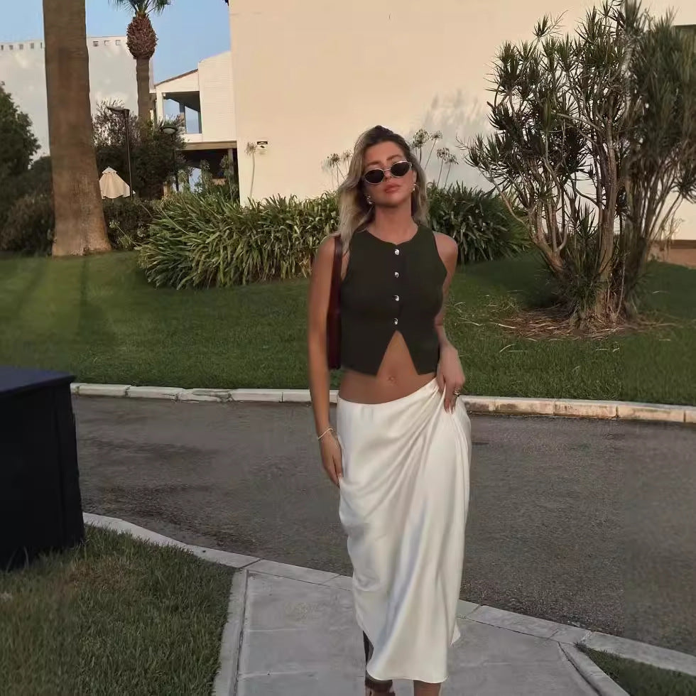 Ärmlös Kofta för Kvinnor med Dekorativa Knappar