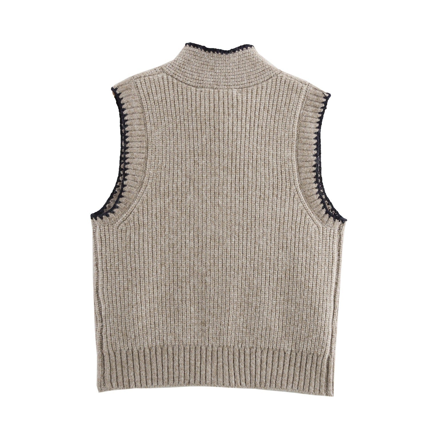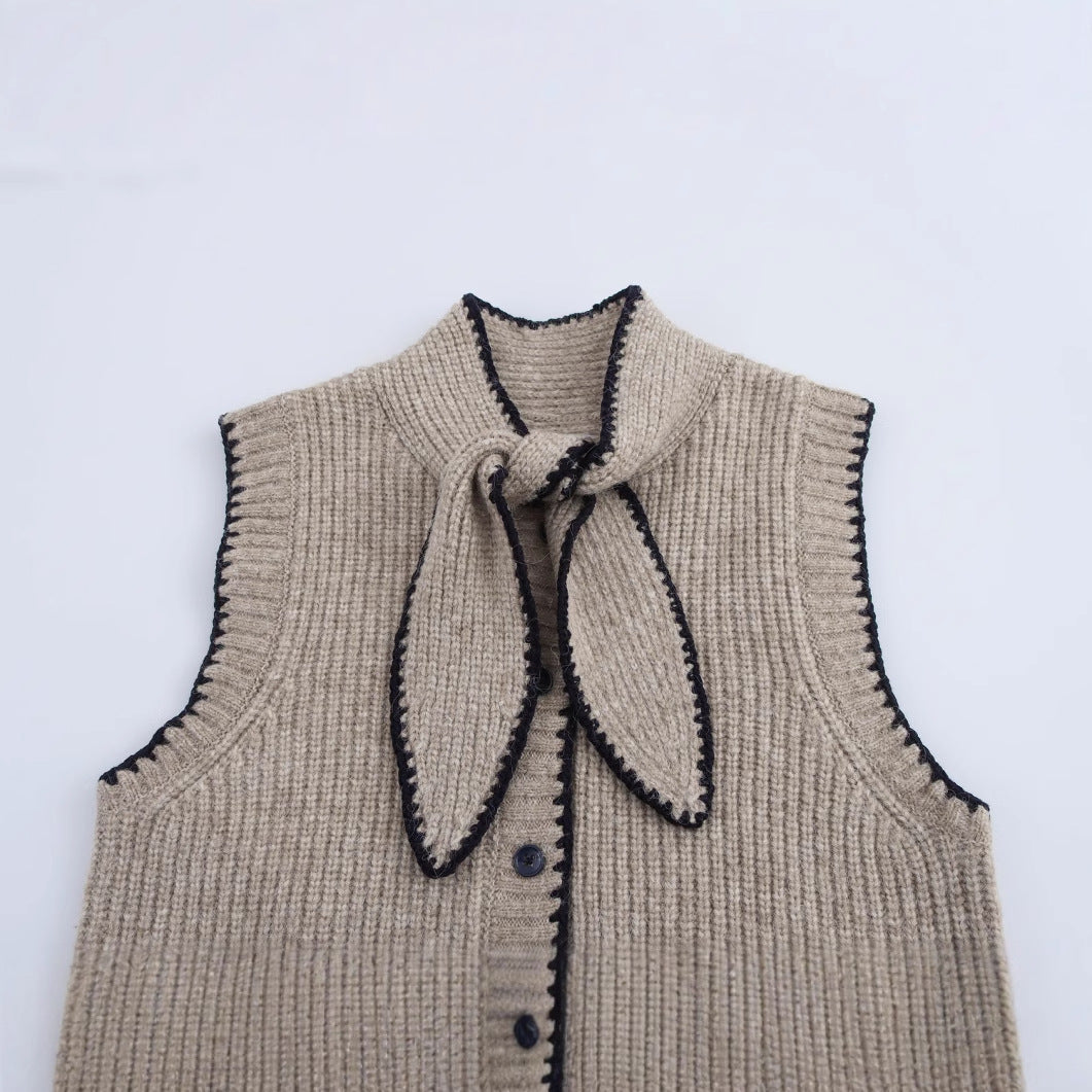 Kvinnors Ärmlös Kofta Mjuk Stickad med Dekorativ Halsduk