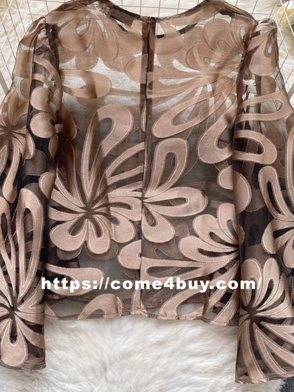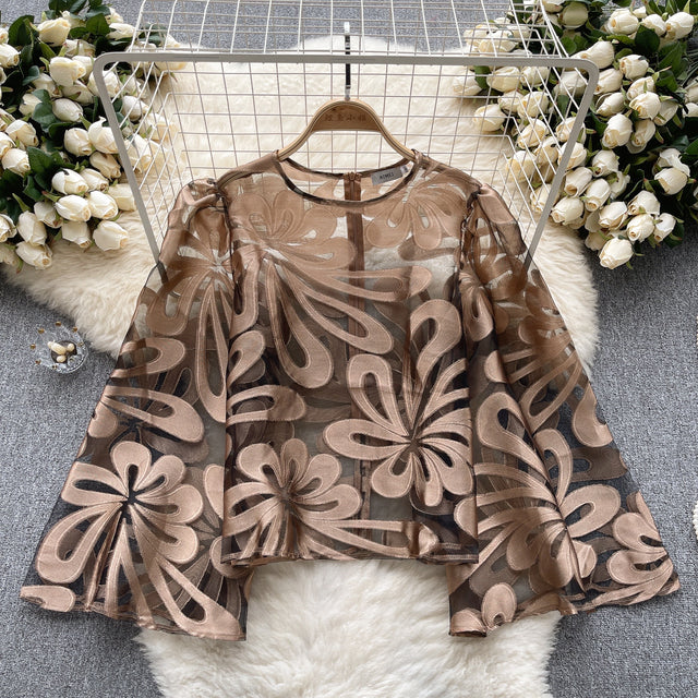Kvinnors Avslappnad Blus Broderad Gasväv