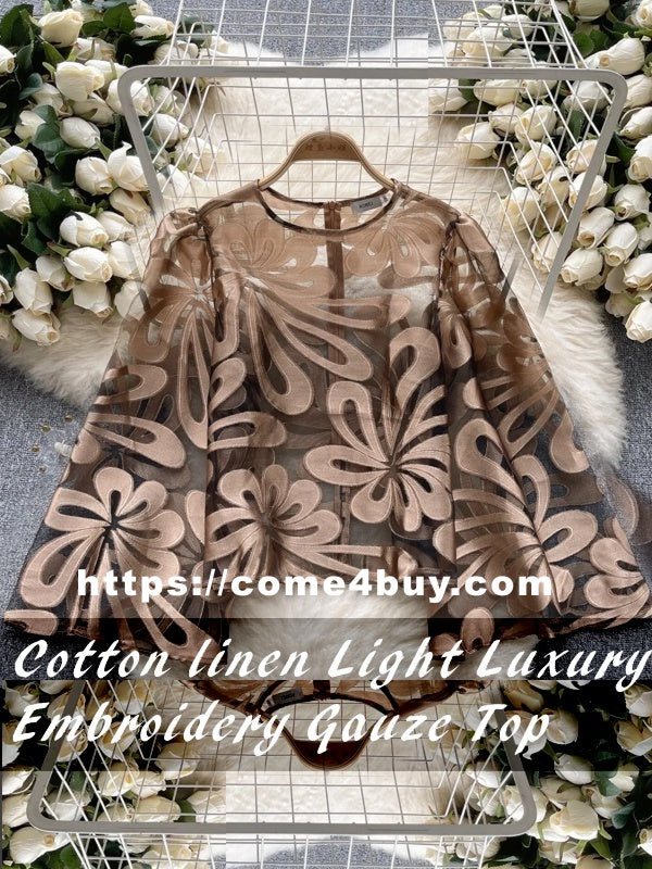 Kvinnors Avslappnad Blus Broderad Gasväv Polyester Bomullslinne