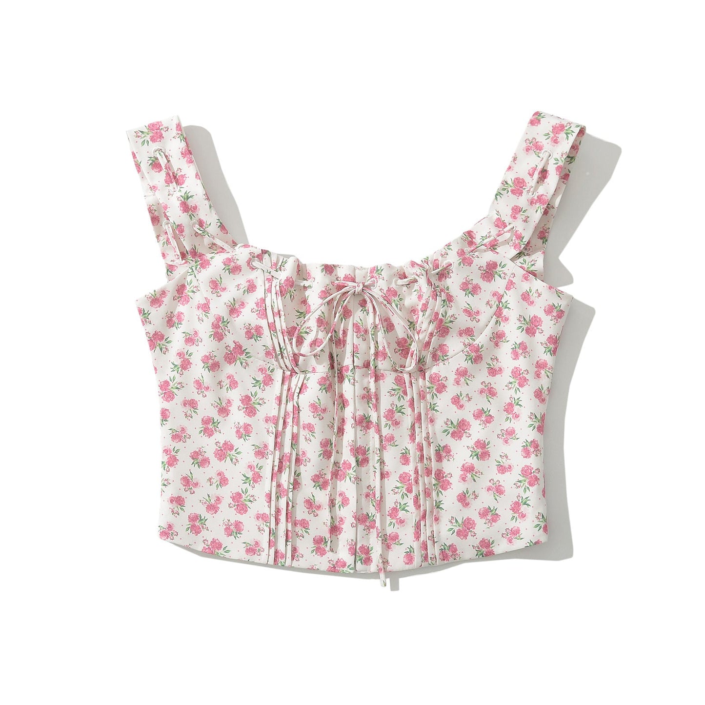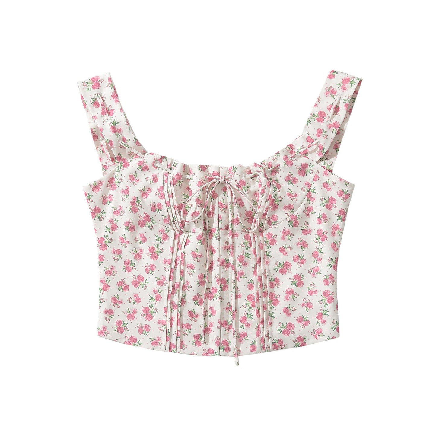 Upplev en känsla av elegans och stil med denna blommiga skördetopp. Den är perfekt för varma dagar och ger en feminin touch till din garderob.