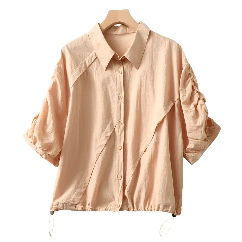 Denna blus är perfekt för varma sommardagar och ger en känsla av lätthet och stil. Med sin justerbara nedre del kan du enkelt anpassa passformen för att känna dig bekväm och självsäker.