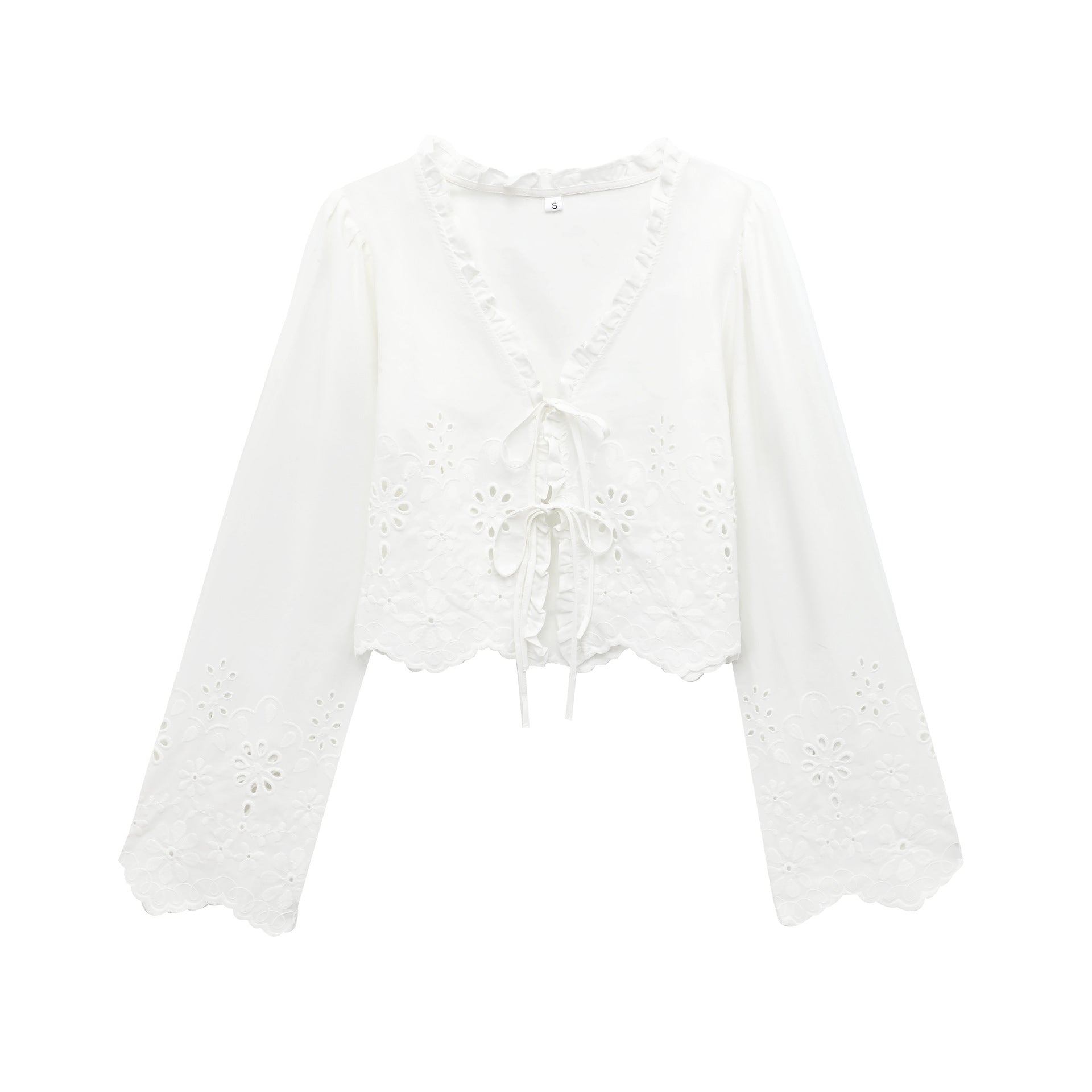 Kvinnors Blus V-ringad Voluminösa Ärmar Broderi