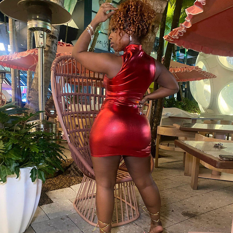 Denna klänning har en hög midja och en kort kjol som skapar en modern och trendig silhuett. Perfekt för både festliga tillfällen och en kväll ute, den är både bekväm och stilren.