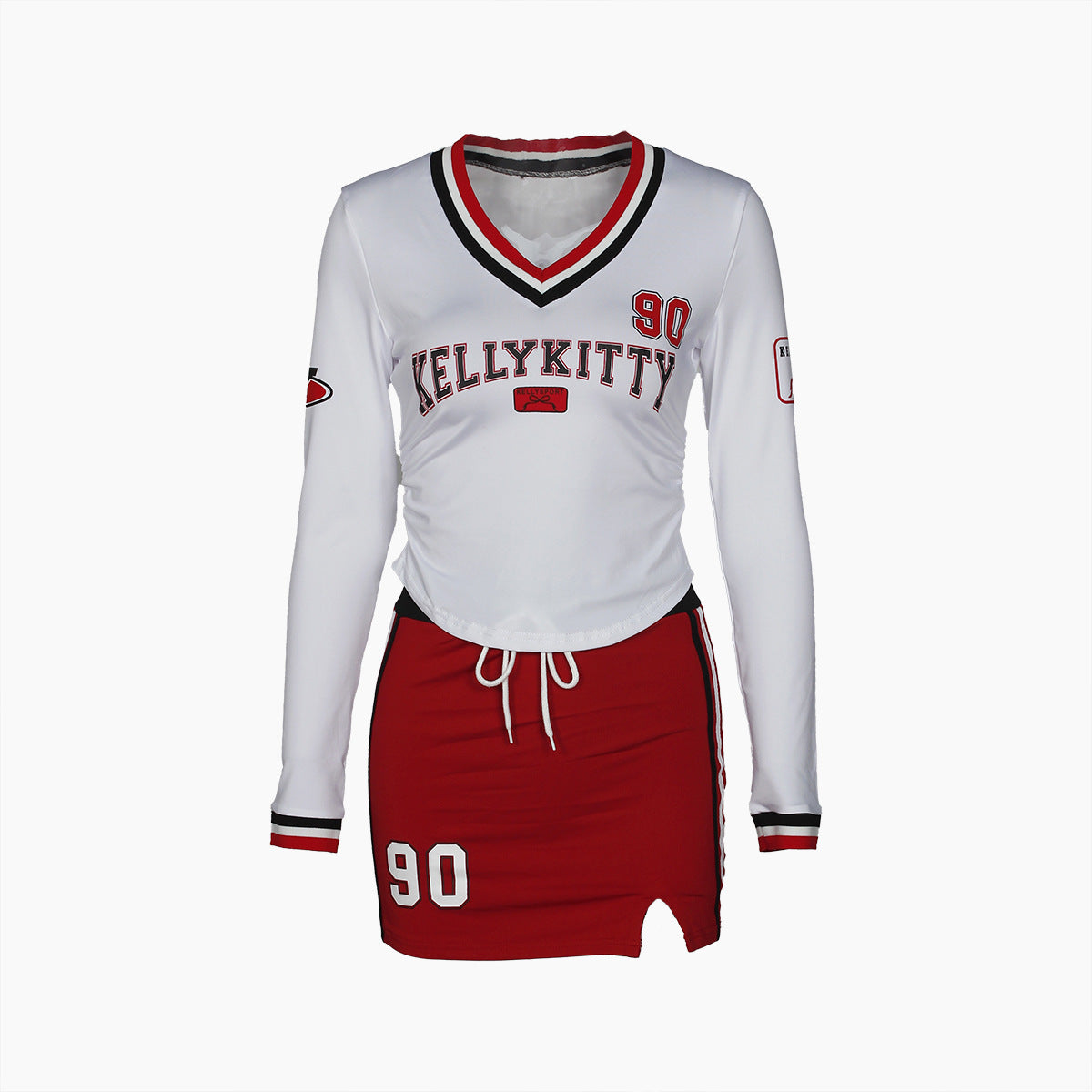 Setet kombinerar en långärmad topp med en figurnära minirock, vilket ger en modern och trendig känsla. Perfekt för både vardagliga och festliga tillfällen, detta plagg är en mångsidig del av din garderob.