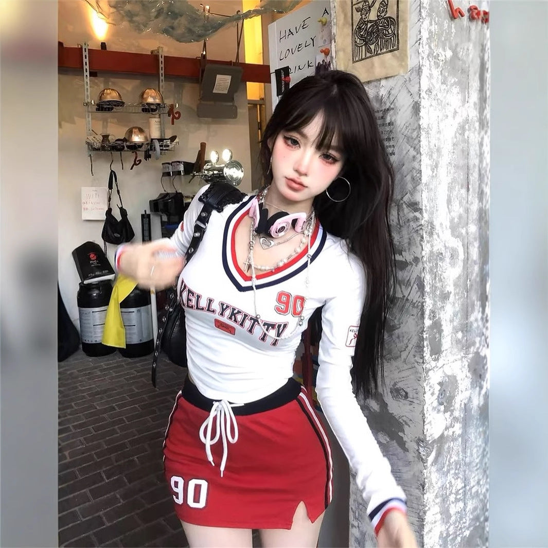 Bodycon Minirock Set för Kvinnor med Långärmad Topp