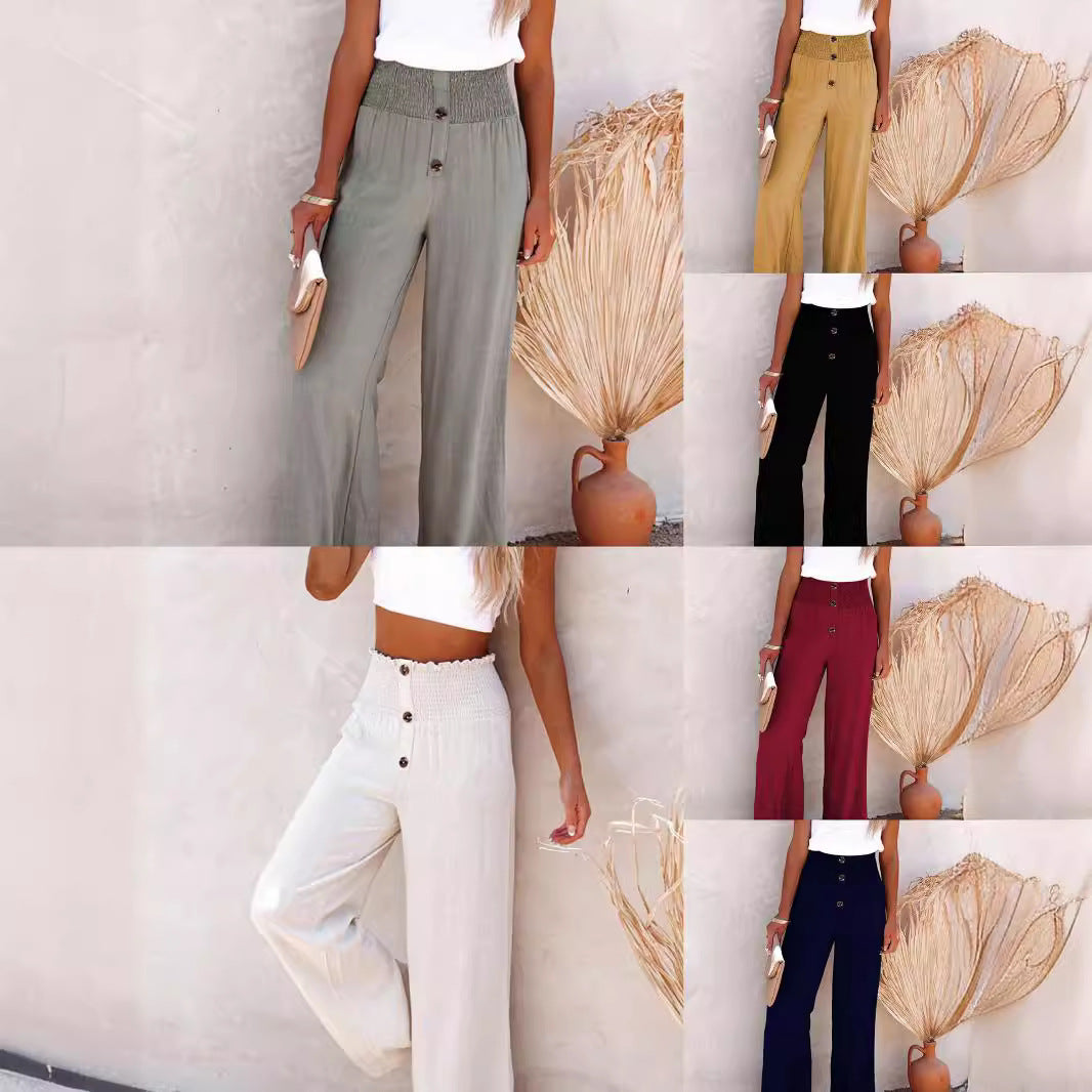 Kvinnors Bredbyxor Hög Midja Bomullslinne Elegant Design med Knappar