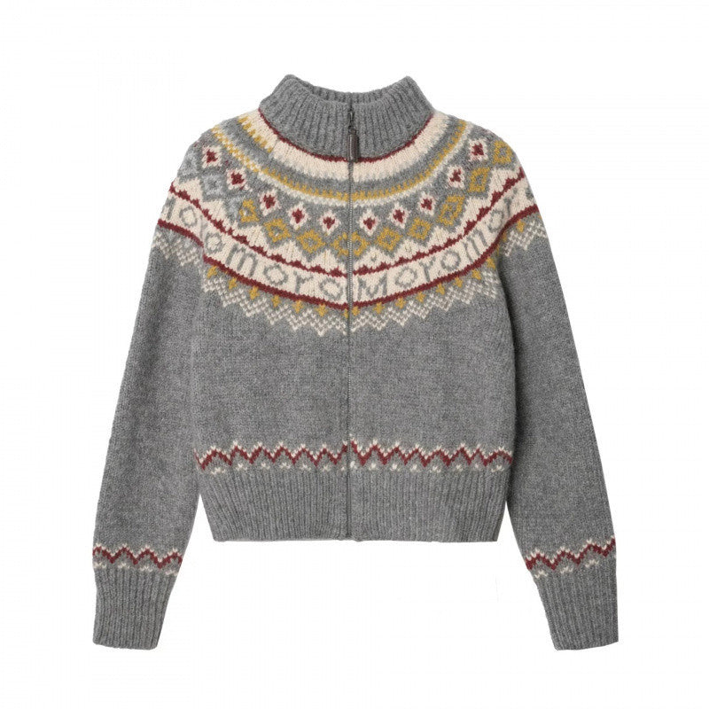Denna cardigan har en avslappnad och lös passform, vilket gör den idealisk att bära över tröjan för extra värme eller som en fristående del för en avslappnad look. Tröjan pryds av en lekfull norsk ok-design, vilket ger en modern twist på traditionella skandinaviska motiv.