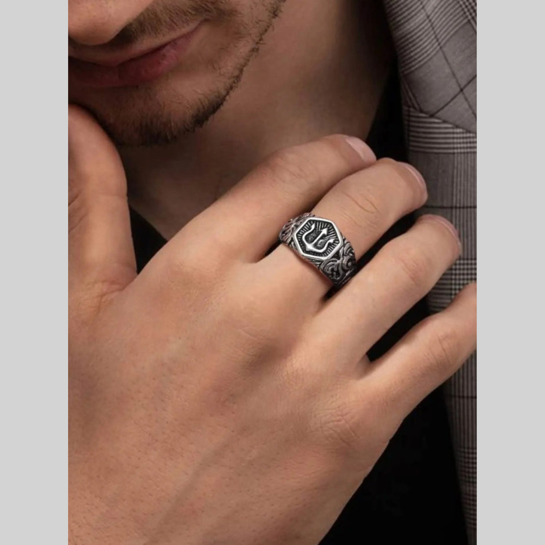 Ringen är tillverkad av rostfritt stål, vilket ger den både hållbarhet och en glänsande finish. Den är idealisk för festliga tillfällen eller som en stilfull accessoar i vardagen.