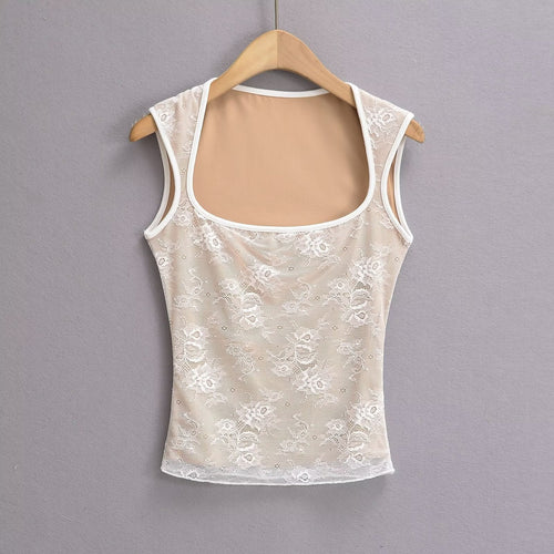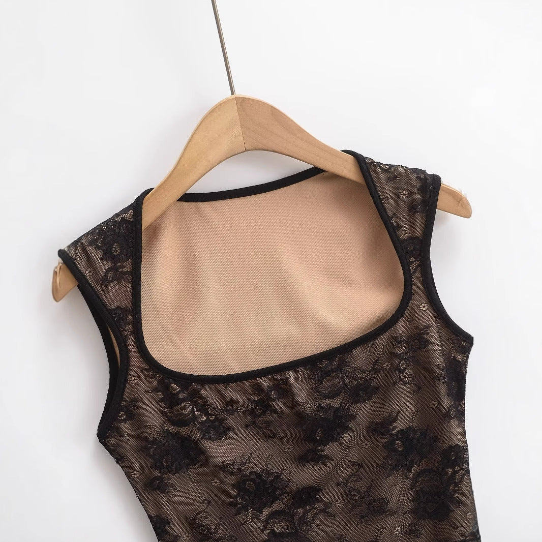 Kvinnors Festtop med Blommönster Cirkulär Halsringning i Lätt Spets