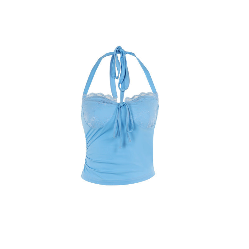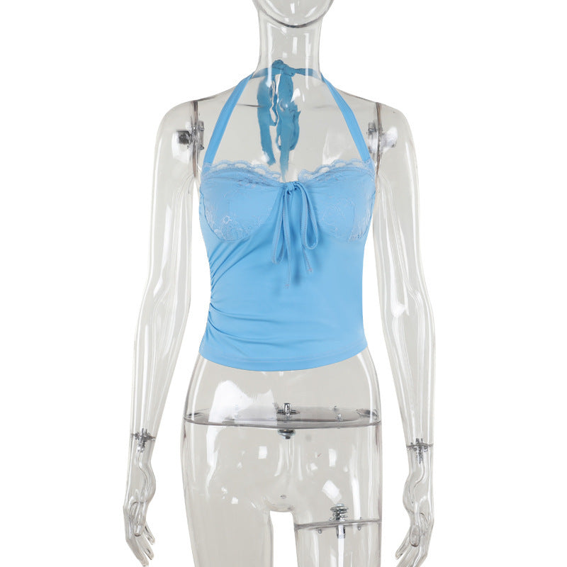 Kvinnors Halshållare Topp med Spetsdetaljer