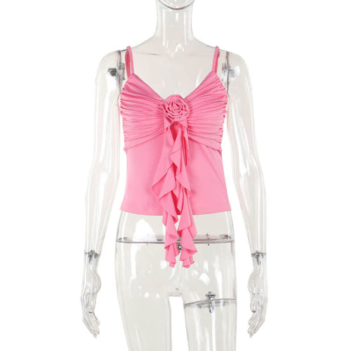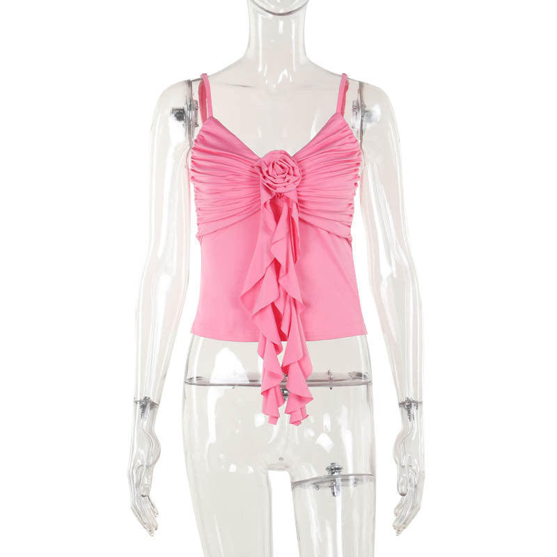 Kvinnors Festtopp med Volanger och Blommapplikation Justerbara Remmar