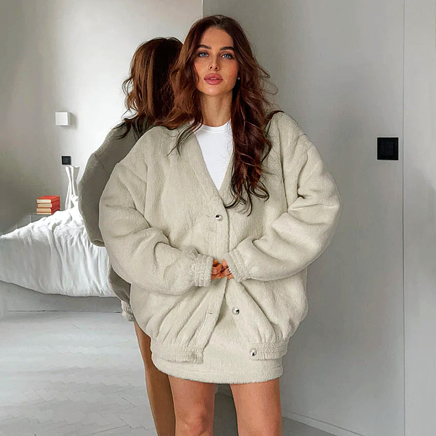 Kvinnors Fleece Set Mysig Jacka och Byxor Mjuk Värmande Fleece