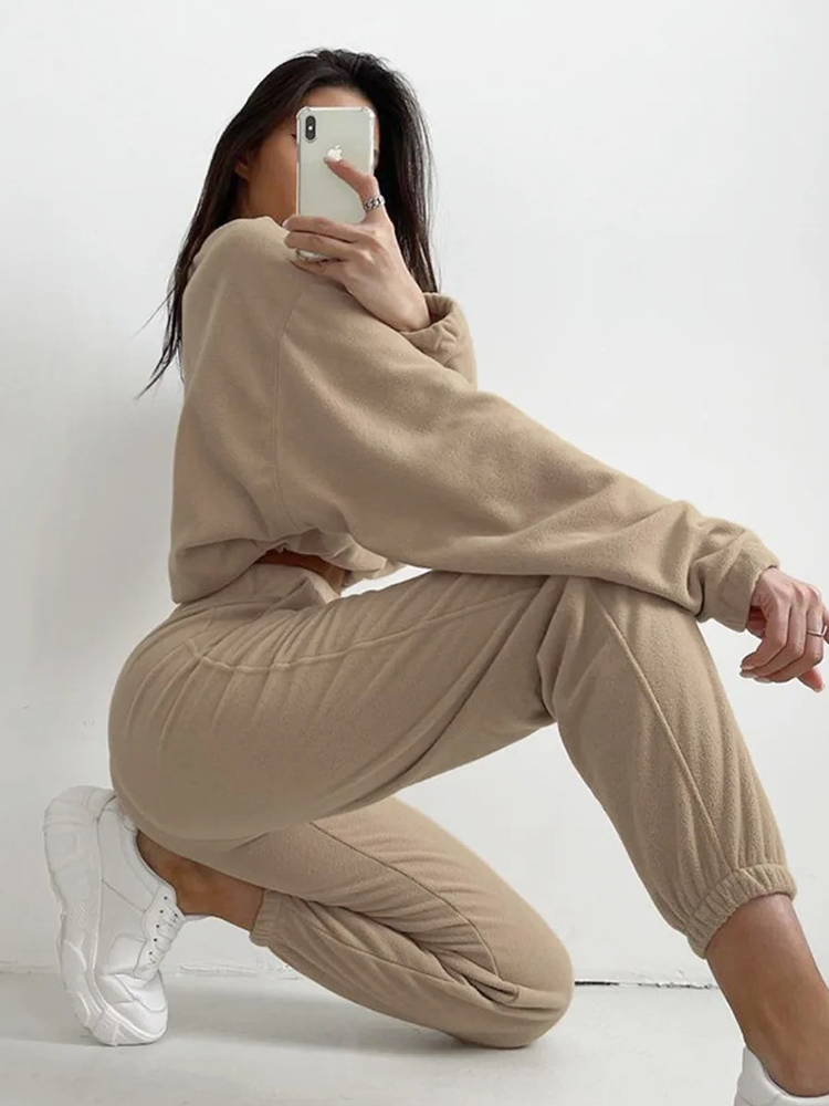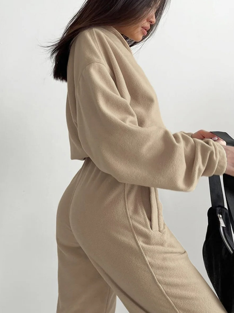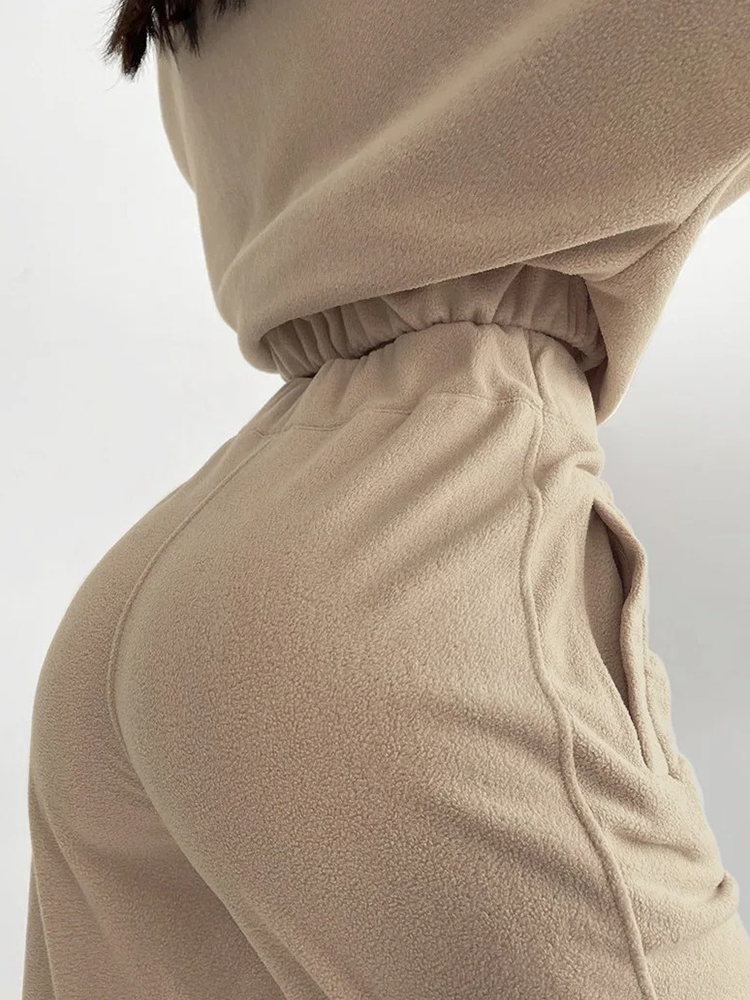 Kvinnors Zip Pullover Set i Mjuk Fleece