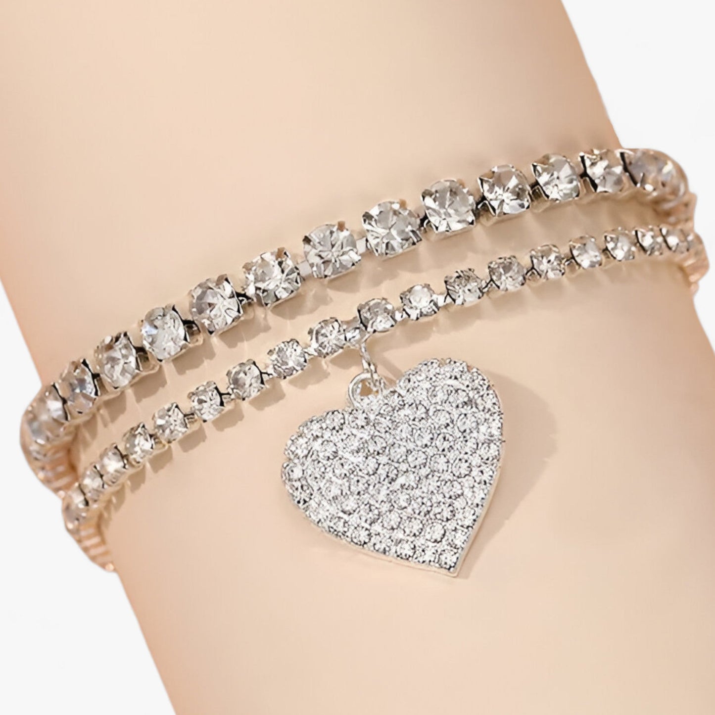 - Elegant design med glänsande kristaller och hjärthänge för en glamourös look.