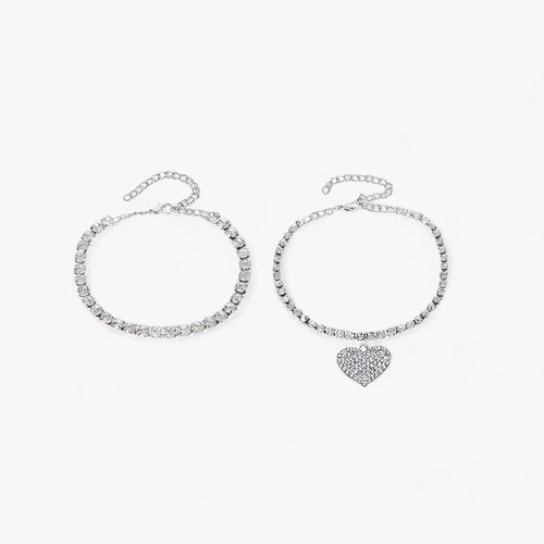 Kvinnors Fotkedjeset Hjärtdesign Silverpläterat med Kristaller