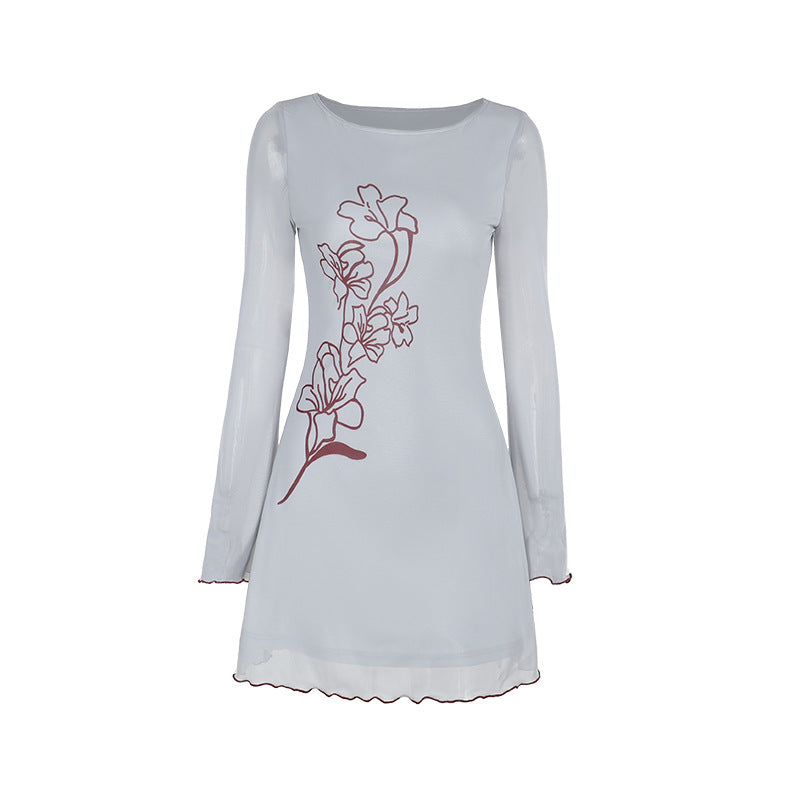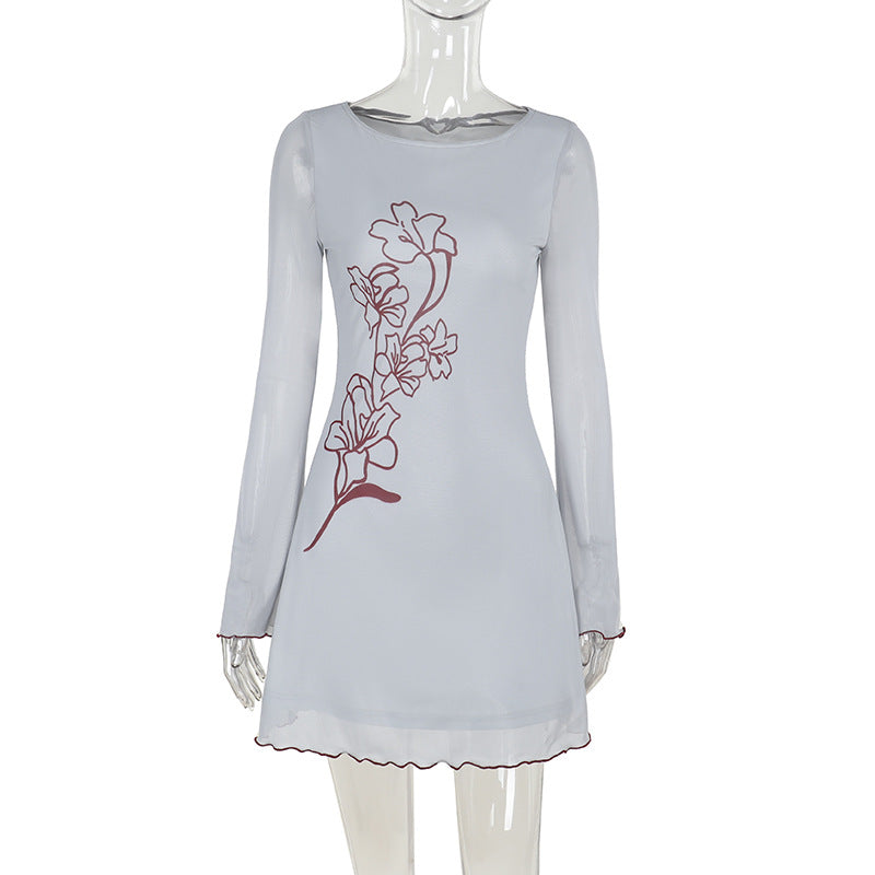 Kvinnors Fritidsklänning Blommönster Långa Ärmar