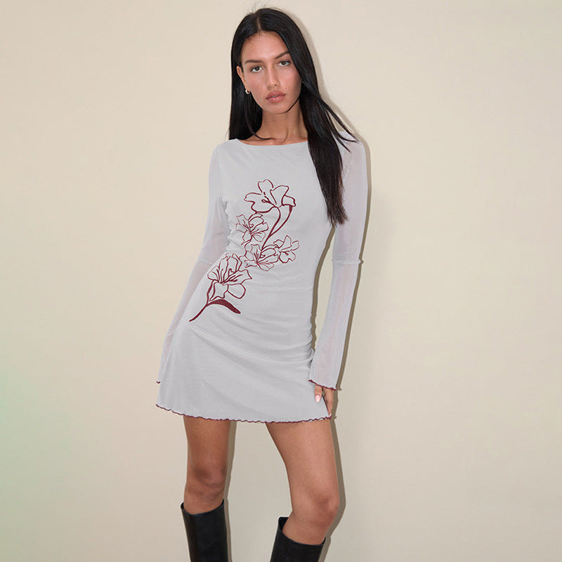 Kvinnors Fritidsklänning Blommönster Långa Ärmar Andningsbart Material