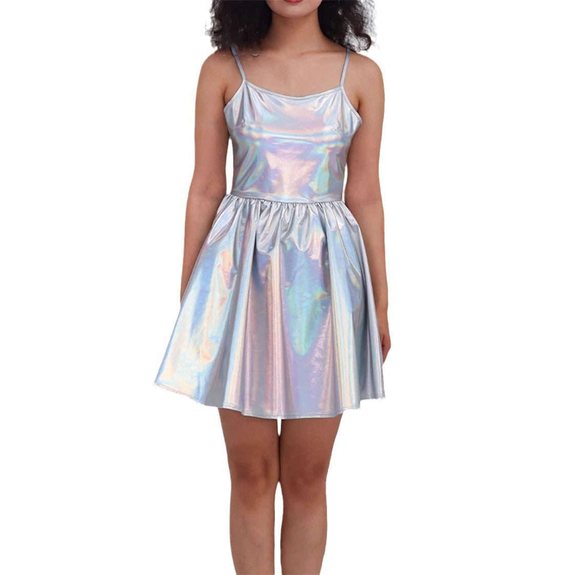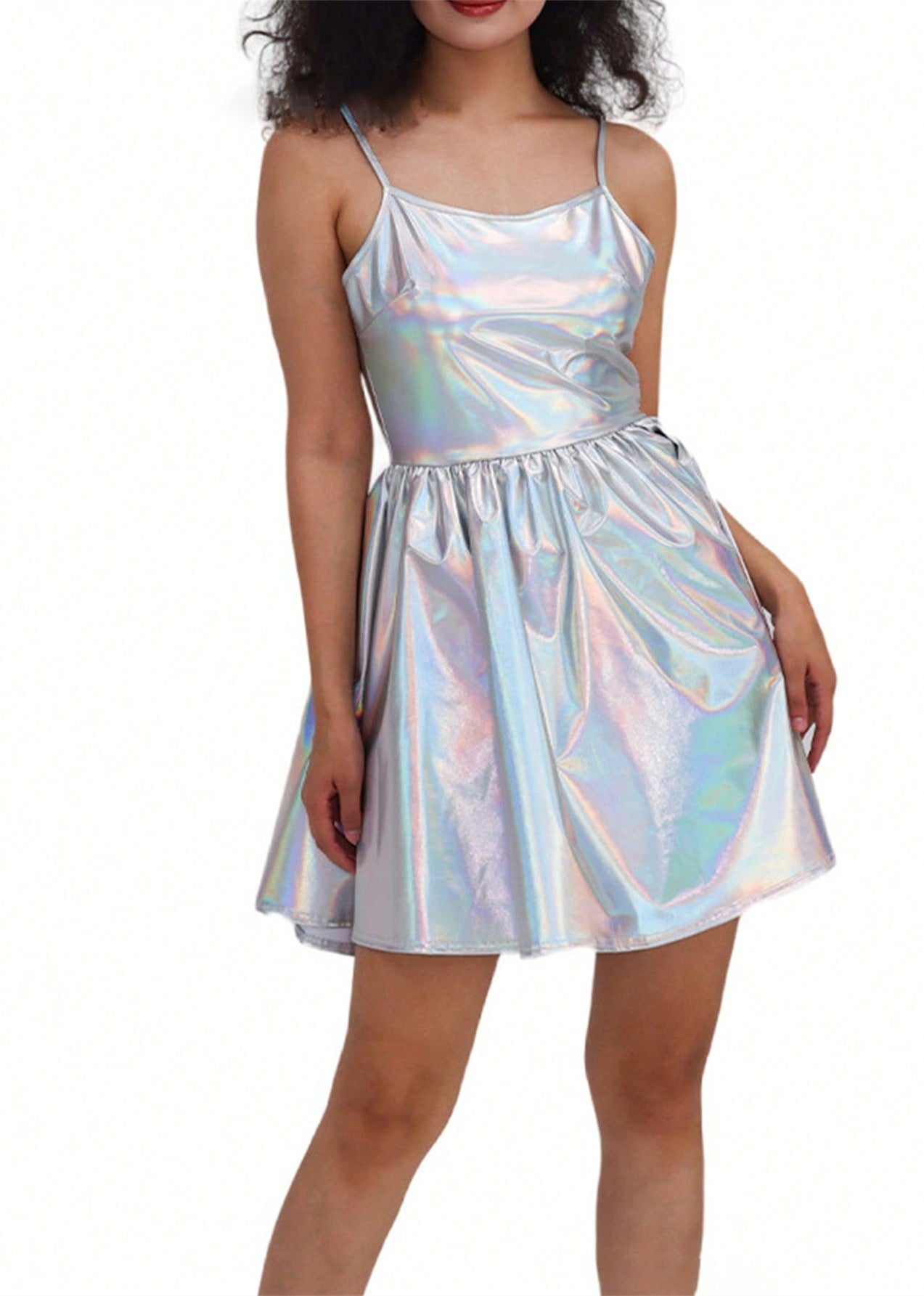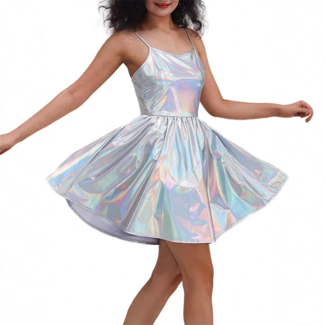 Kvinnors Miniklänning Holografisk Med Justerbara Bärar
