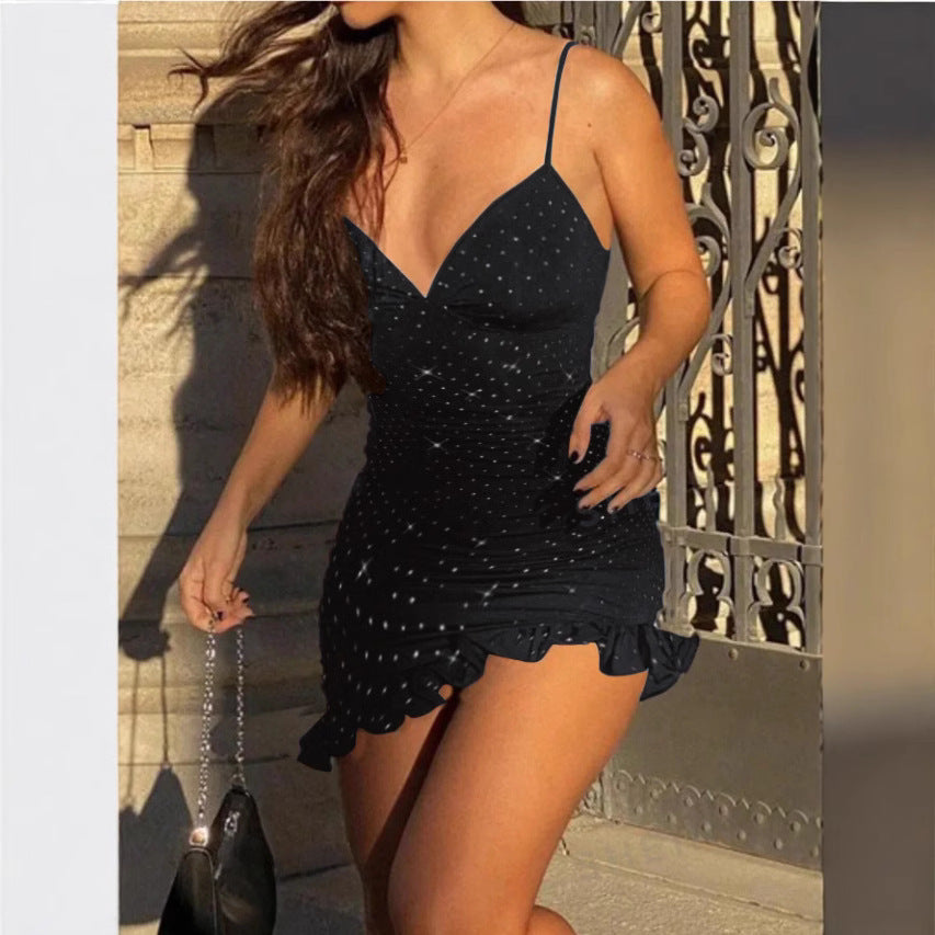 Kvinnors Glittrig Miniklänning Med V-Ringning Och Rüsch Detaljer