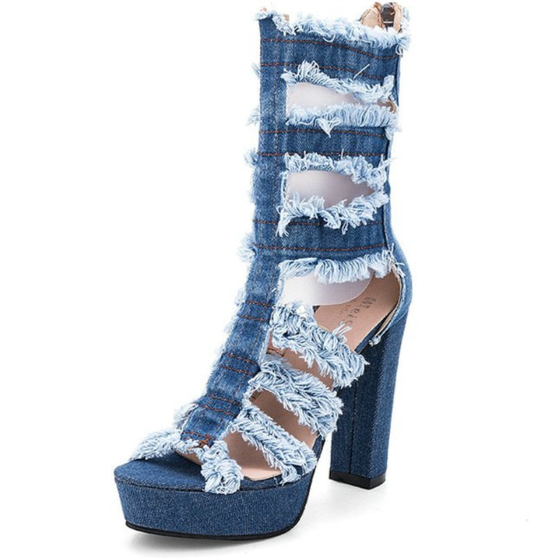Kvinnors Höga Sandaler Plattform Denim Öppen Tå