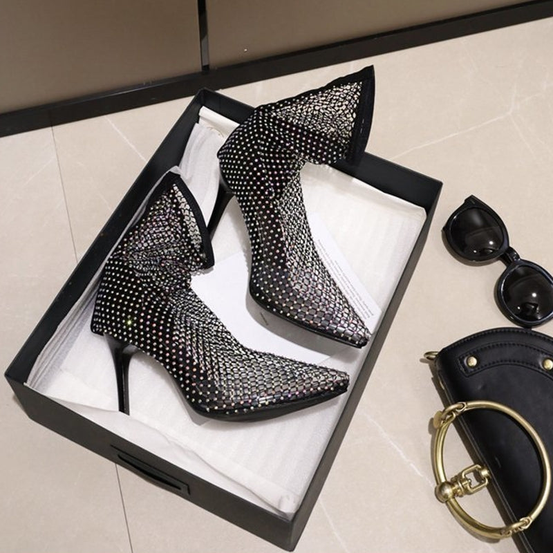 Dessa sandaler har en modern design med en hög klack och en öppen tå, vilket gör dem idealiska för både festliga tillfällen och vardagligt bruk. Det luftiga meshmaterialet ger en lätt och bekväm känsla, perfekt för varma dagar.