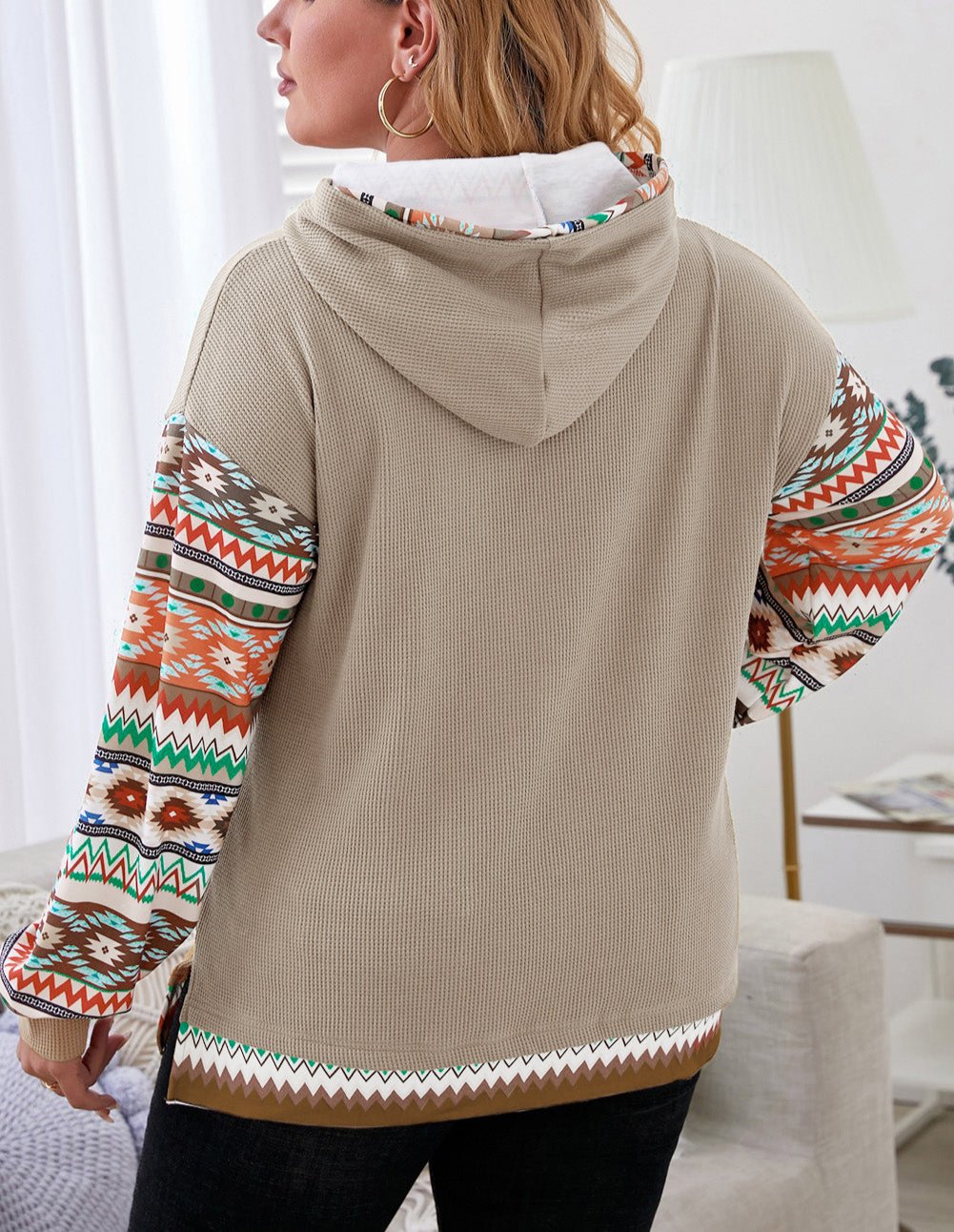 Kvinnors Hoodie Bohemisk Aztec Patchwork Våffelmaterial