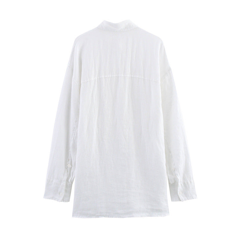 Den monokroma designen i vitt gör skjortan mångsidig och lätt att styla för både vardag och fest. Med långa ärmar och en elegant silhuett är den ett utmärkt val för alla modeälskare.