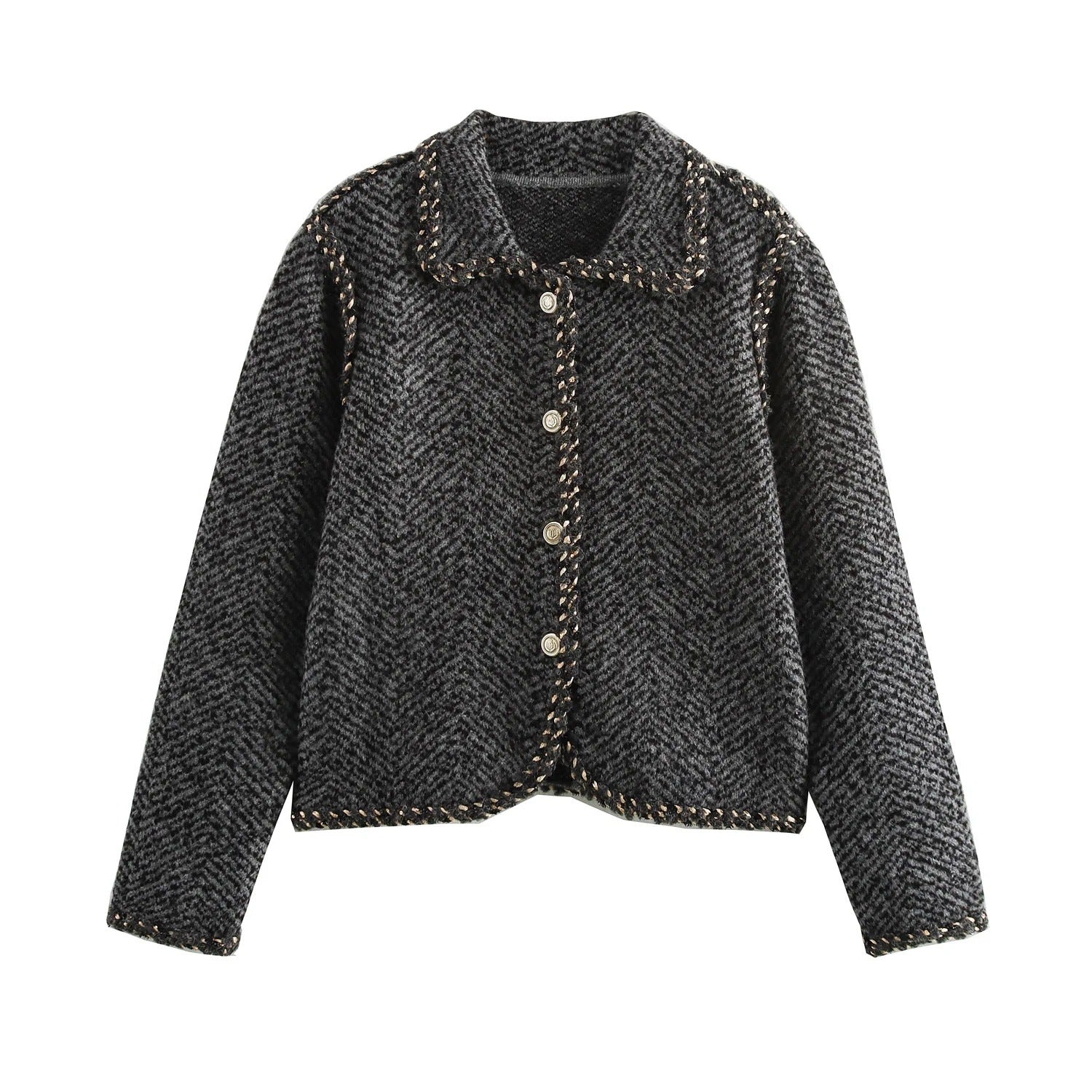 Kardigan för kvinnor med dekorativ knapp och strukturerad yta