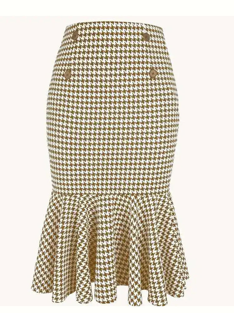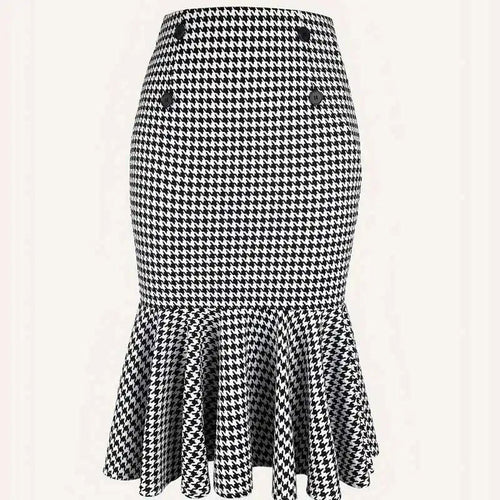 Kjolen har ett tidlöst kontrollmönster som kombinerar modernitet med klassisk elegans. Den feminina silhuetten och den rynkade designen gör att den framhäver din figur på ett vackert sätt.