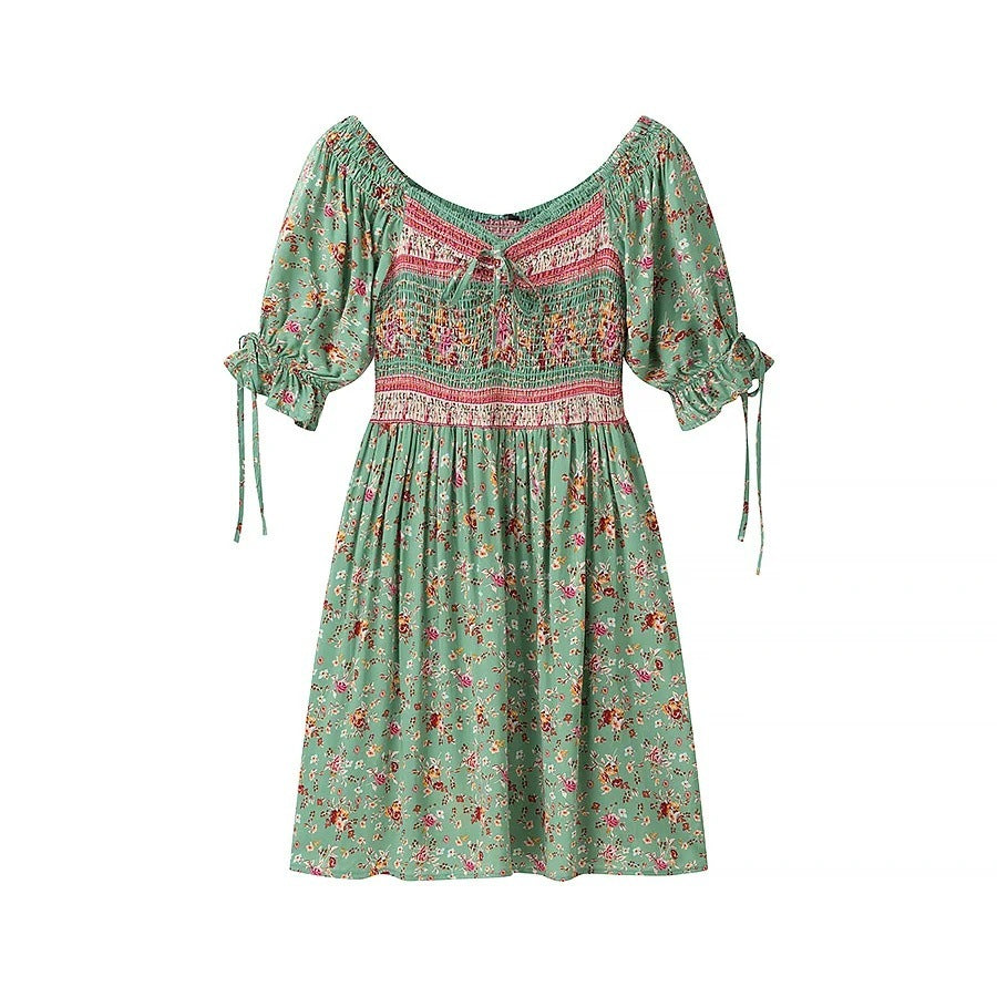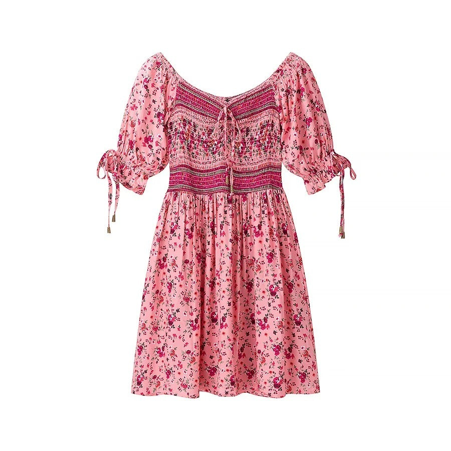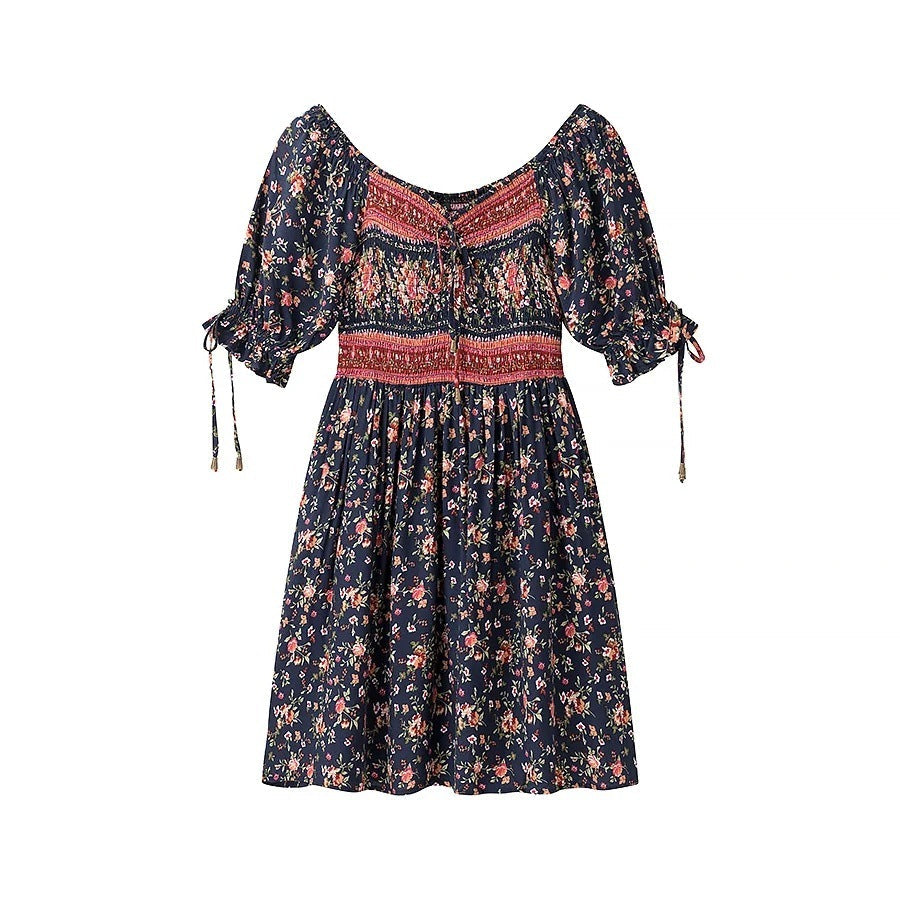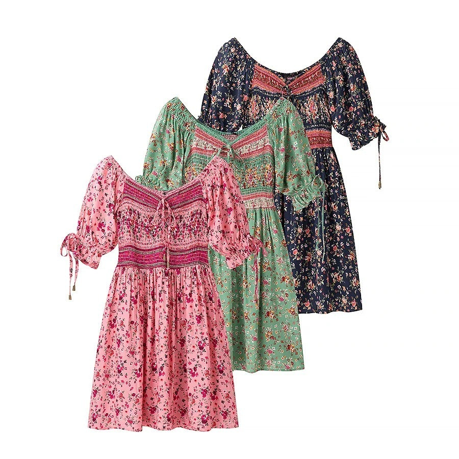 Designad med en elastisk topp som smickrar figuren och en lekfull ruffsad design, är denna klänning idealisk för både avslappnade och festliga tillfällen. Den mjuka och andningsbara bomullen gör att du kan njuta av en bekväm passform hela dagen.