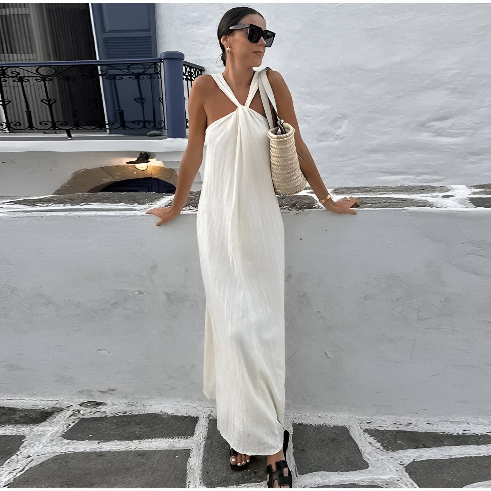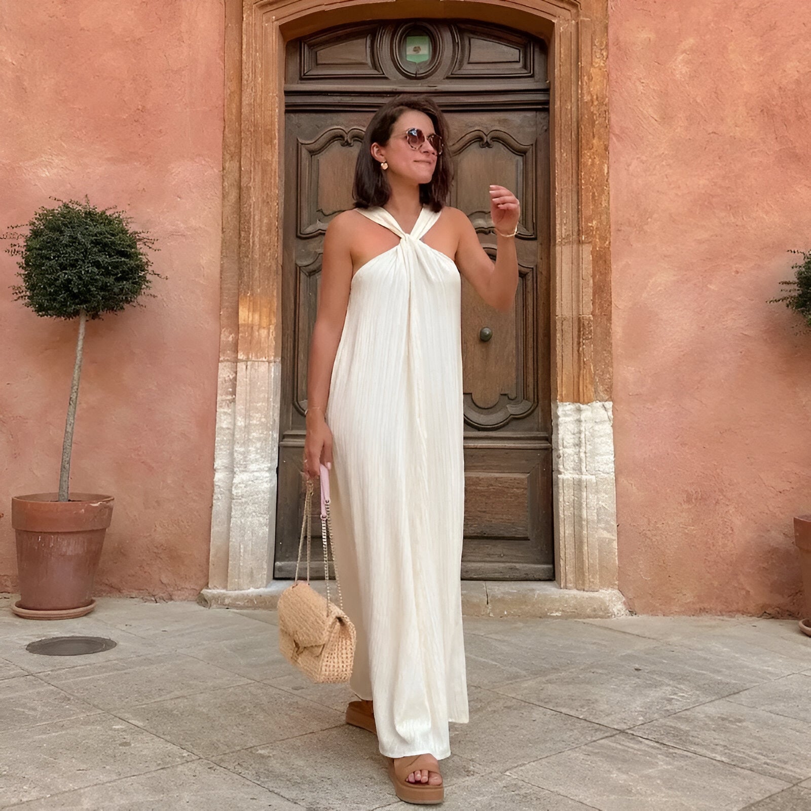 Denna klänning har en modern design som smälter samman med en klassisk silhuett, vilket gör den till ett tidlöst plagg. Perfekt för både strandfester och formella evenemang, kommer du att känna dig fantastisk varje gång du bär den.