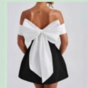 Klänningen kombinerar klassiska och moderna designelement, vilket gör den idealisk för bröllop, fester eller andra speciella tillfällen. Den eleganta bakre halsringningen och den unika slingan på baksidan ger en extra touch av charm och stil.