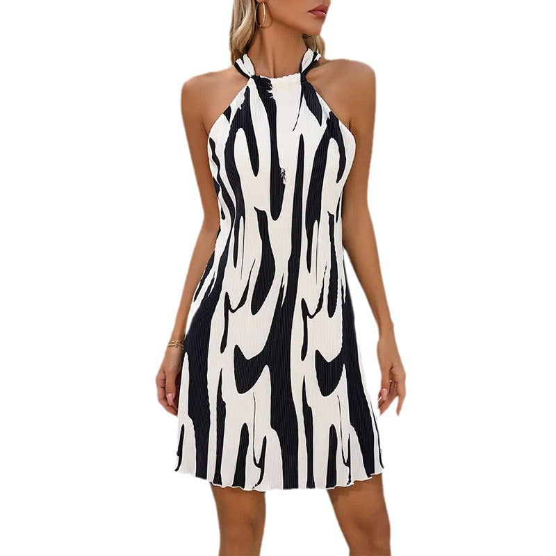 Kvinnors Kort Klänning Rynkad Design Sommarklänning i Högkvalitativt Tyg