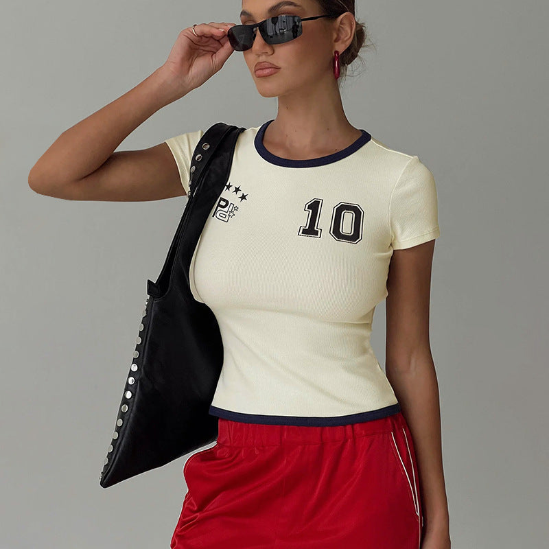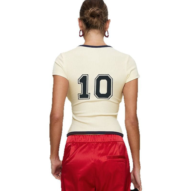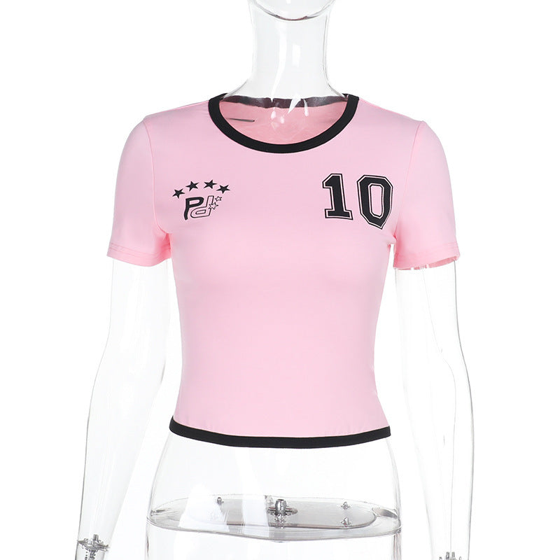 Denna korta topp är idealisk för sportaktiviteter och avslappnade tillfällen. Med en cirkulär halsringning och en modern design, kommer den att bli en favorit i din garderob.