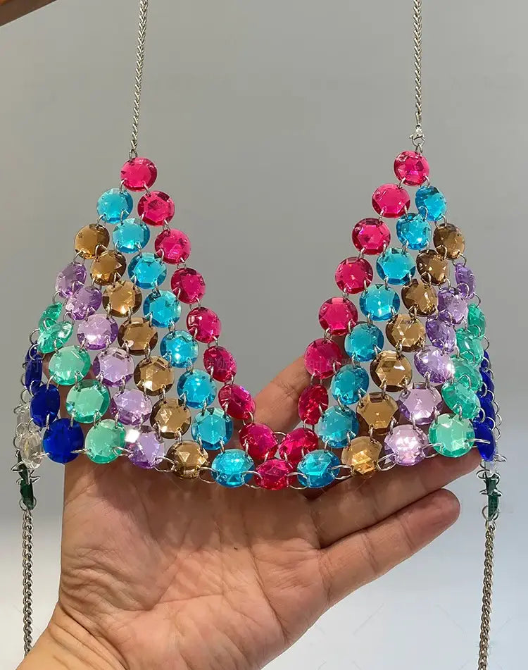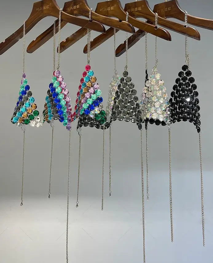 Dessa kroppsmycken är tillverkade av högkvalitativ zinklegation och prydda med glittrande kristaller. Den geometriska formen ger en modern och elegant känsla, perfekt för att lyfta din BH-samling och ge den en extra touch av stil.