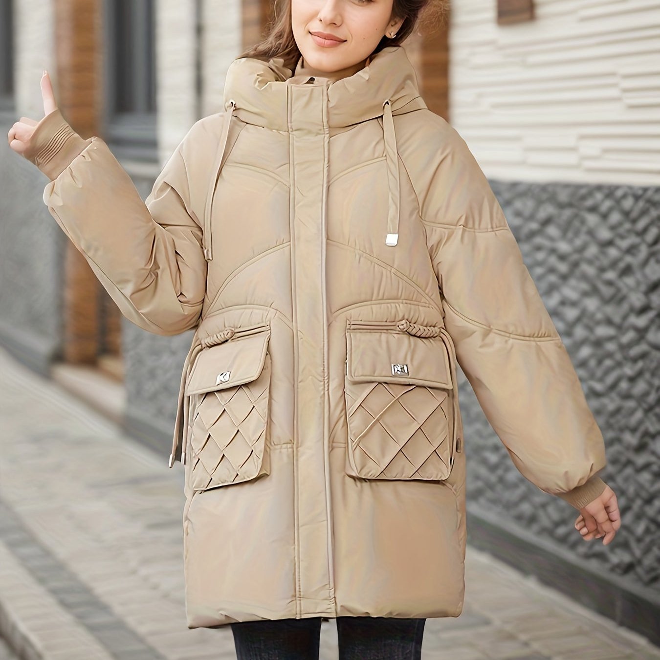 Kvinnors Lång Buffertjacka Sportig Bekväm Tygblandning