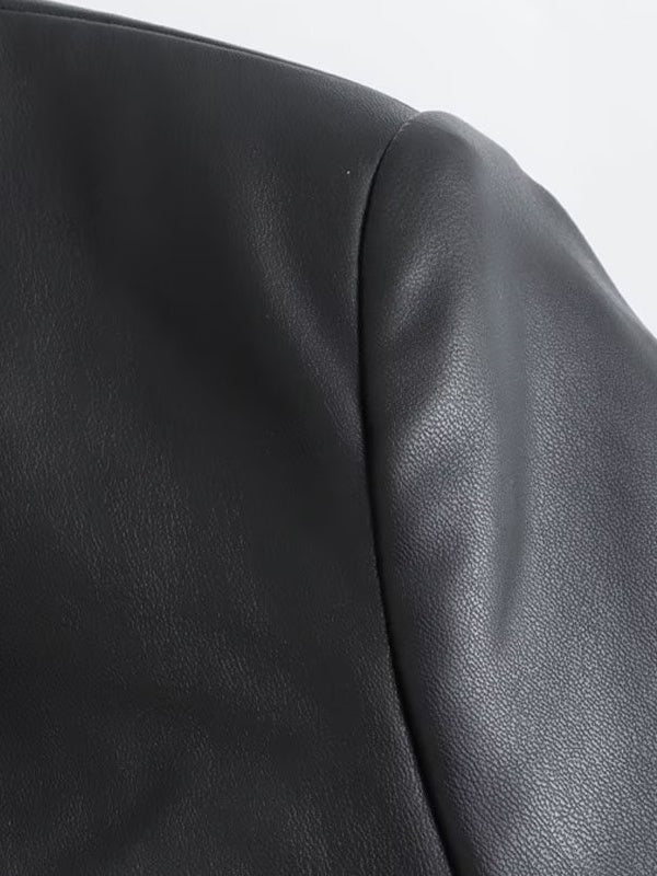 Kvinnors Lång Jacka Syntetiskt Läder Med Vikbar Krage